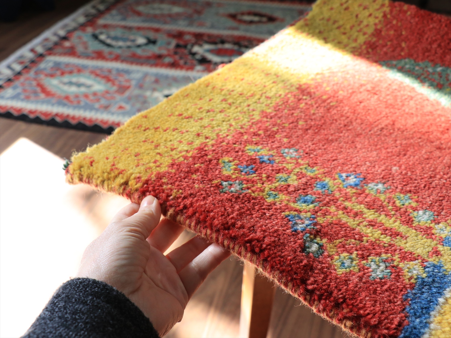 Key:Gabbeh, Nomad, Tribal rug, Persian rug, Fars, Area rug, Hand knotted, Pure Wool, ギャッベ, 手織り, ノマド, 遊牧民, カシュカイ族, 草木染, ウール100%, イラン直輸入, 玄関マット, 部族絨毯, トライバルラグ