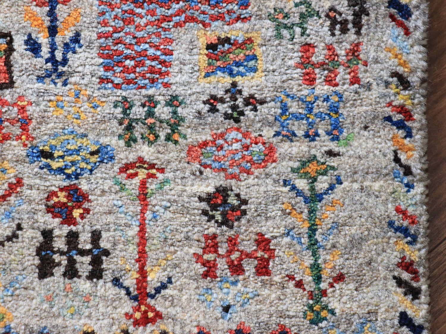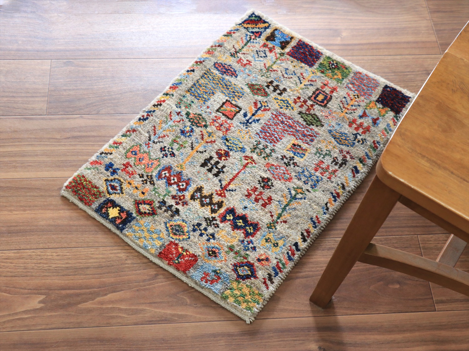 ギャッベ ノマド ミニギャッベ 63x44cm グレー にぎやかなモチーフ