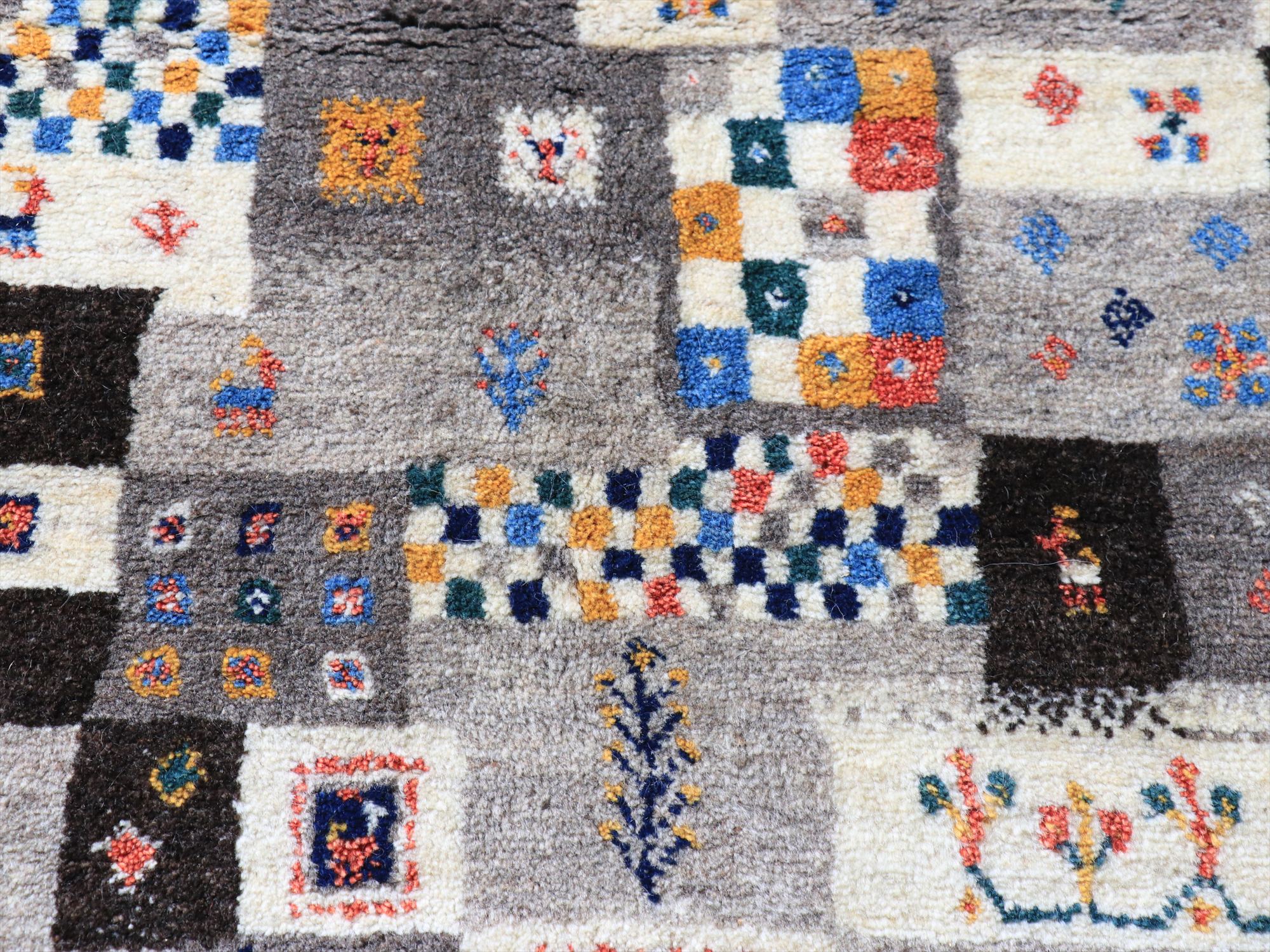 イラン産 手織りギャッベ 172x120cm モザイクのようなタイル柄 グレー ナチュラル モノトーン
