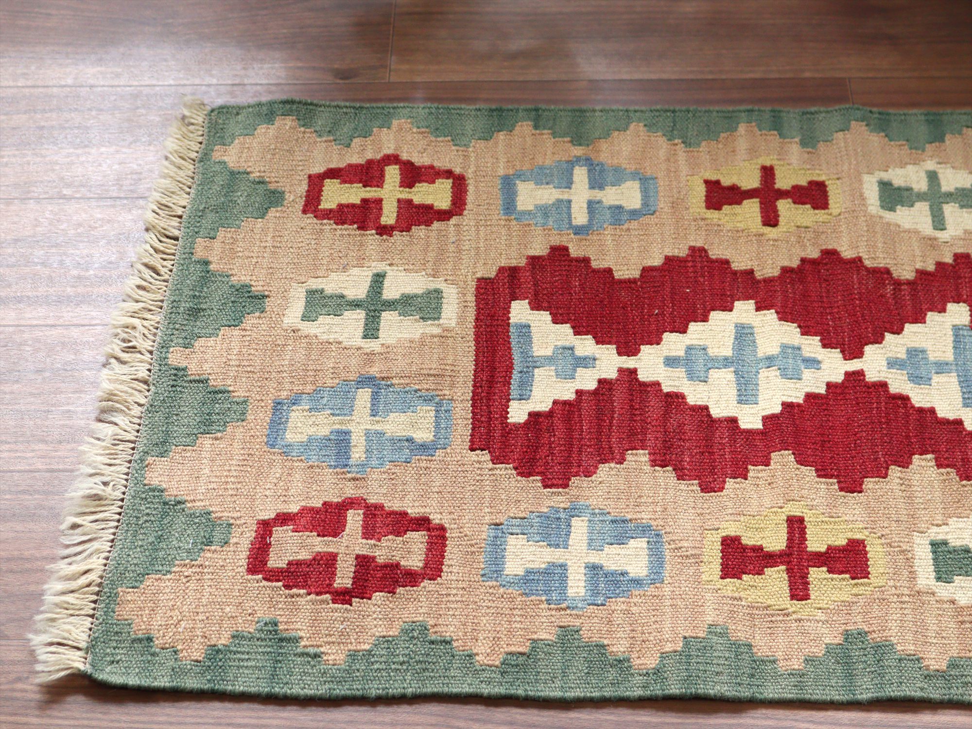 - カシュカイキリム イラン 手織り89×61cm カラフルな幾何学モチーフ