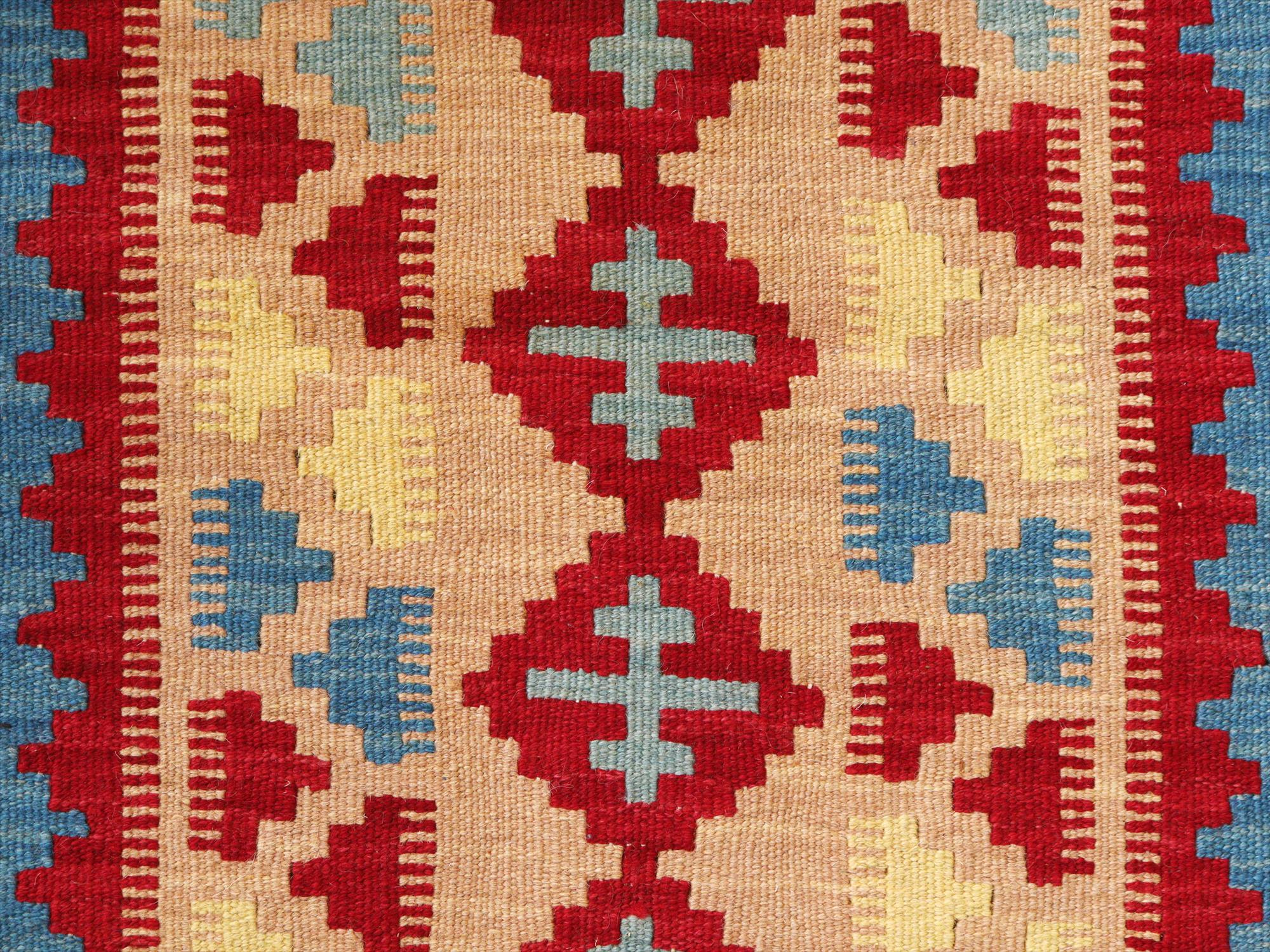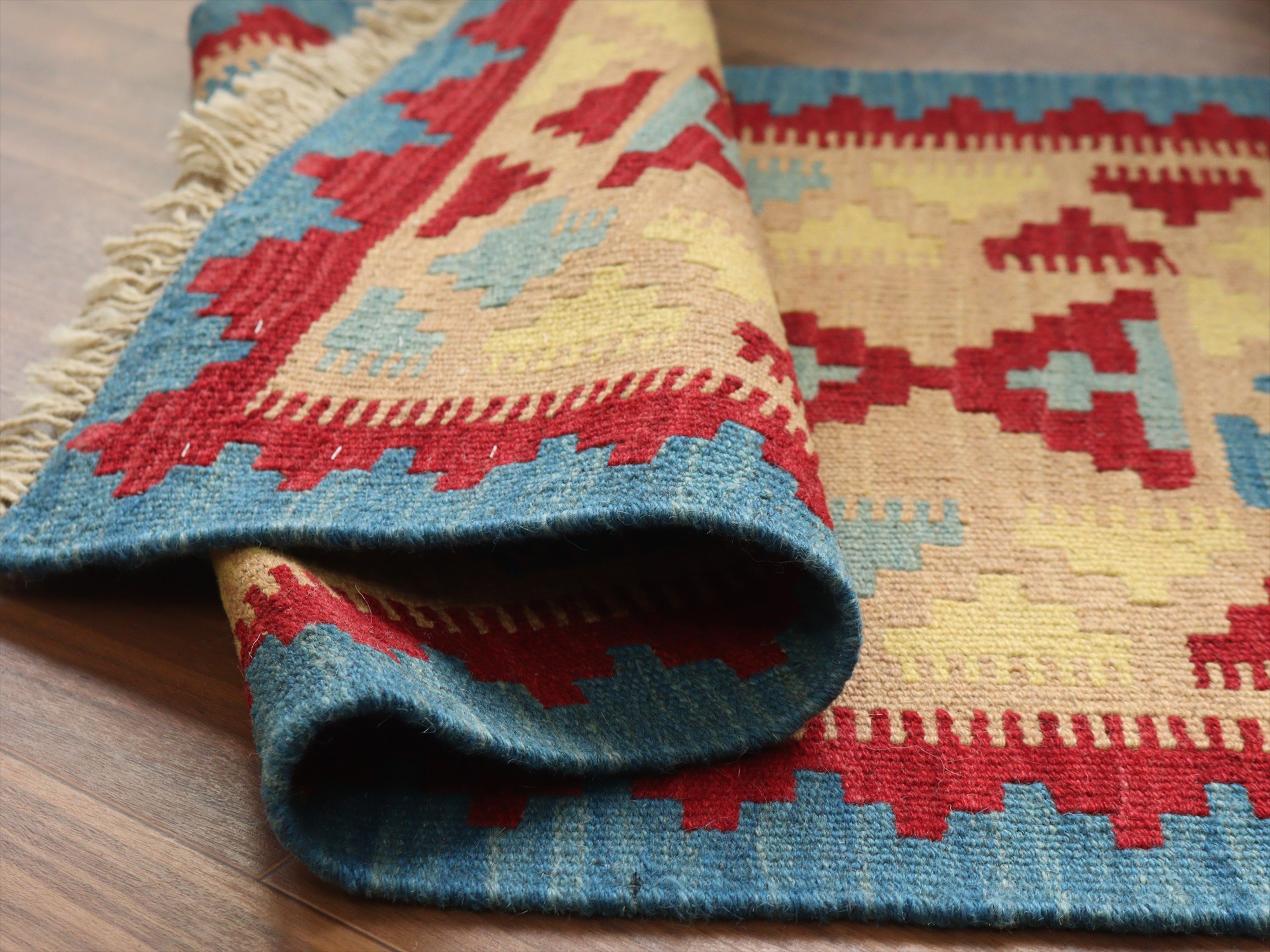 - カシュカイキリム イラン 手織り94×62cm カラフルな幾何学モチーフ