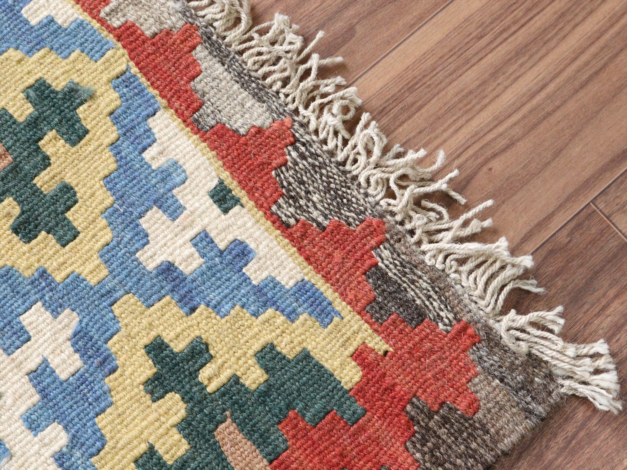 - カシュカイキリム イラン 手織り87×64cm カラフルな幾何学モチーフ
