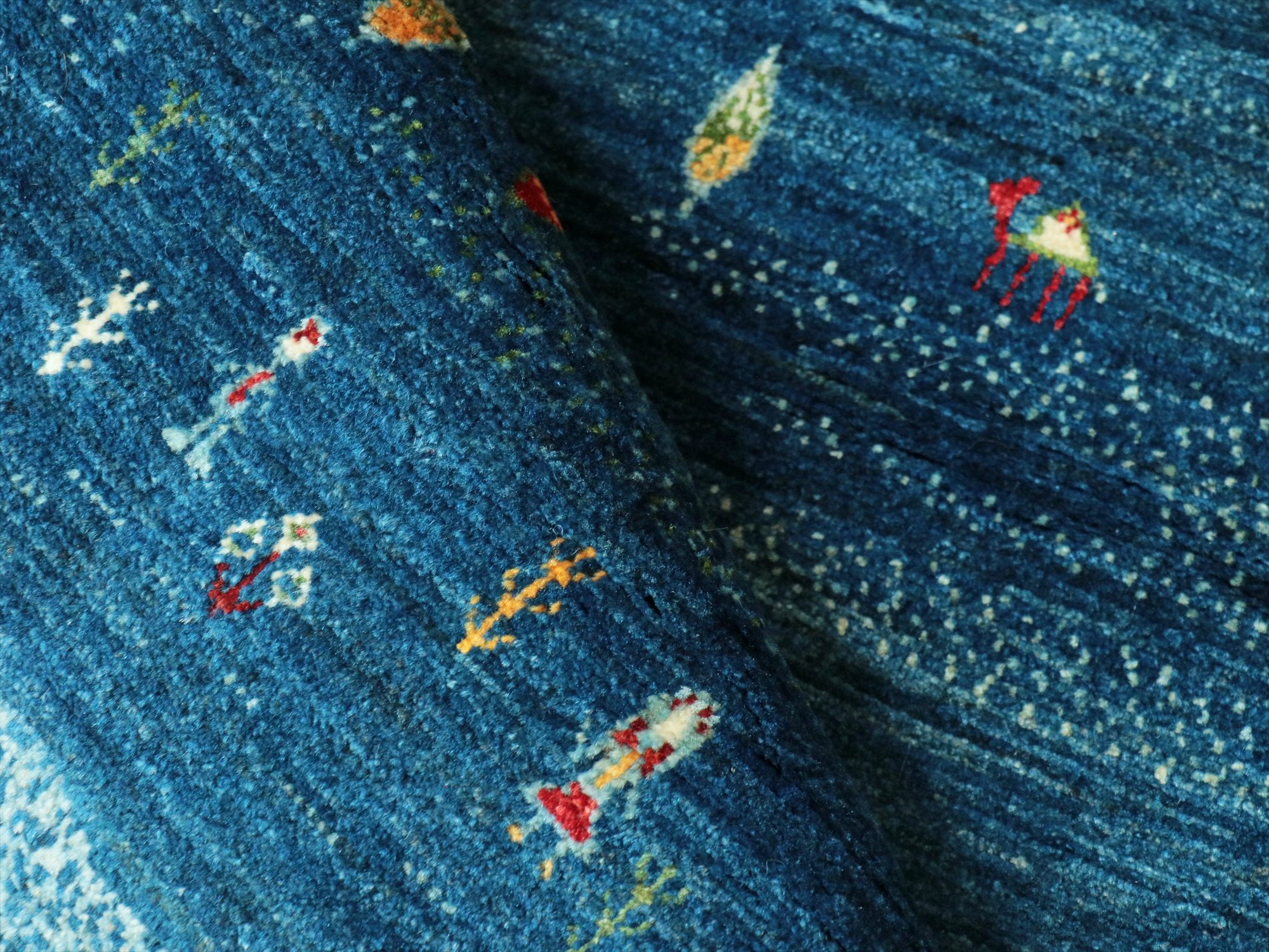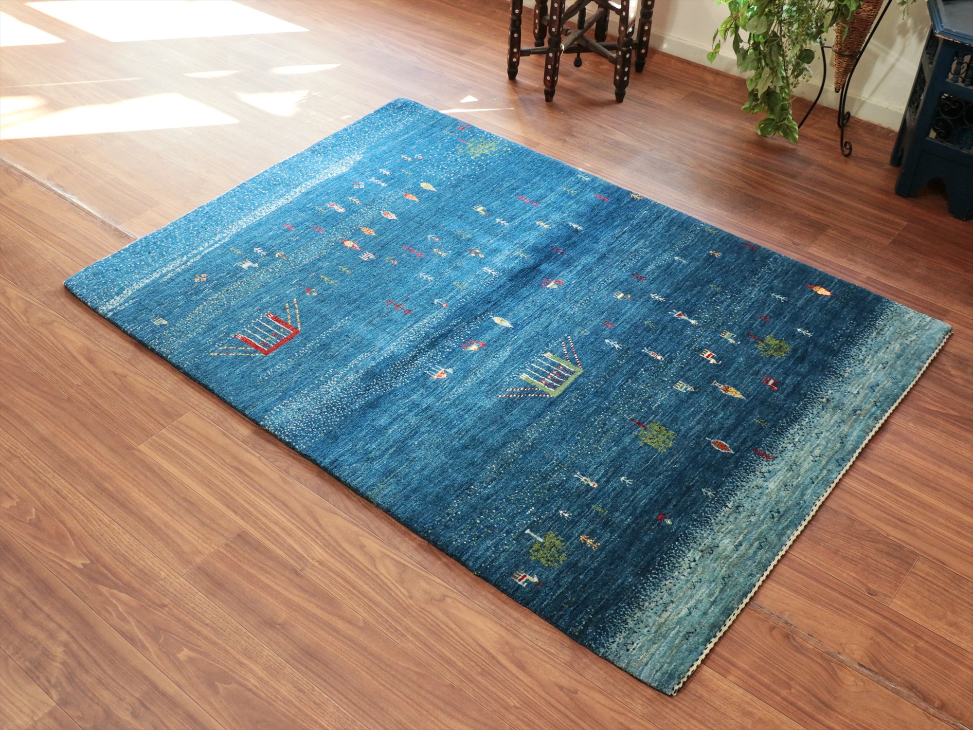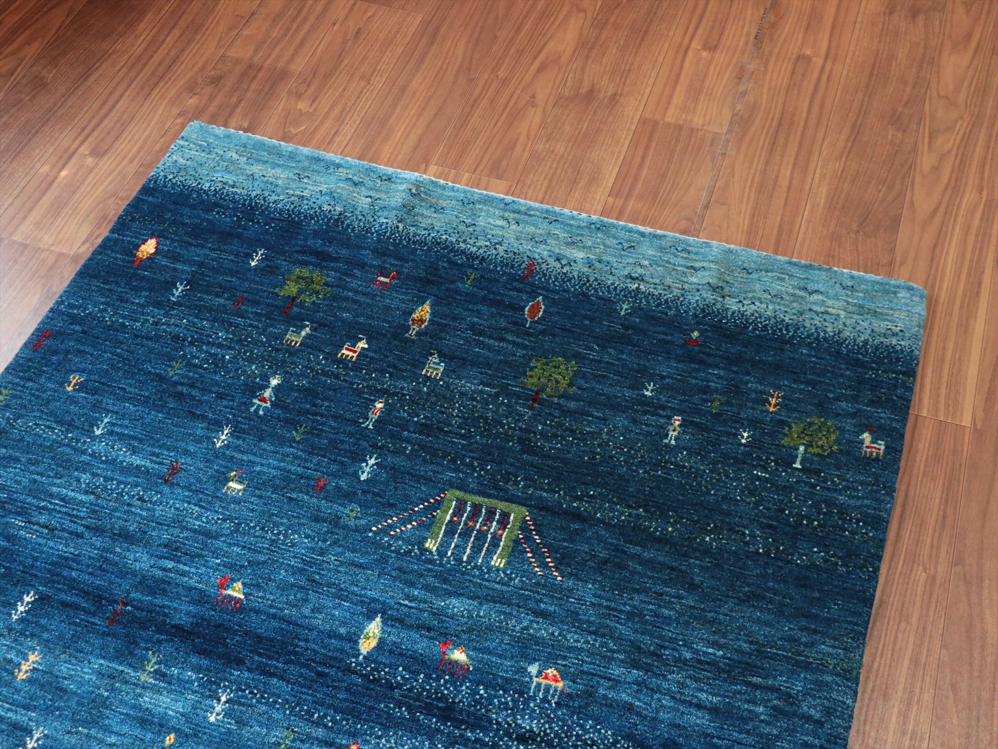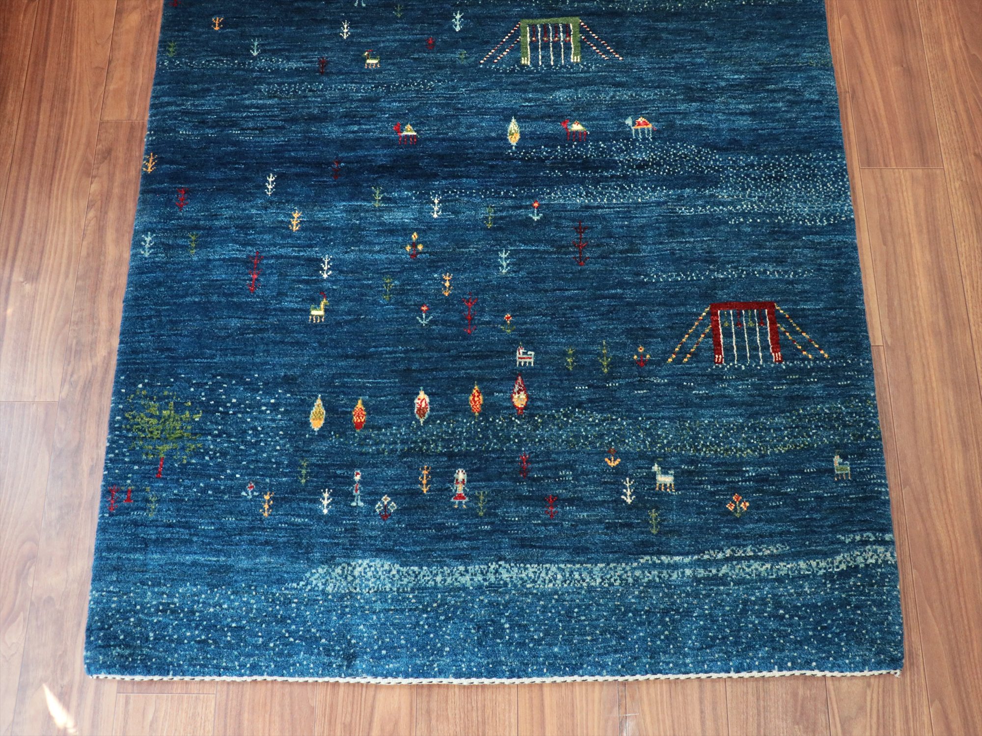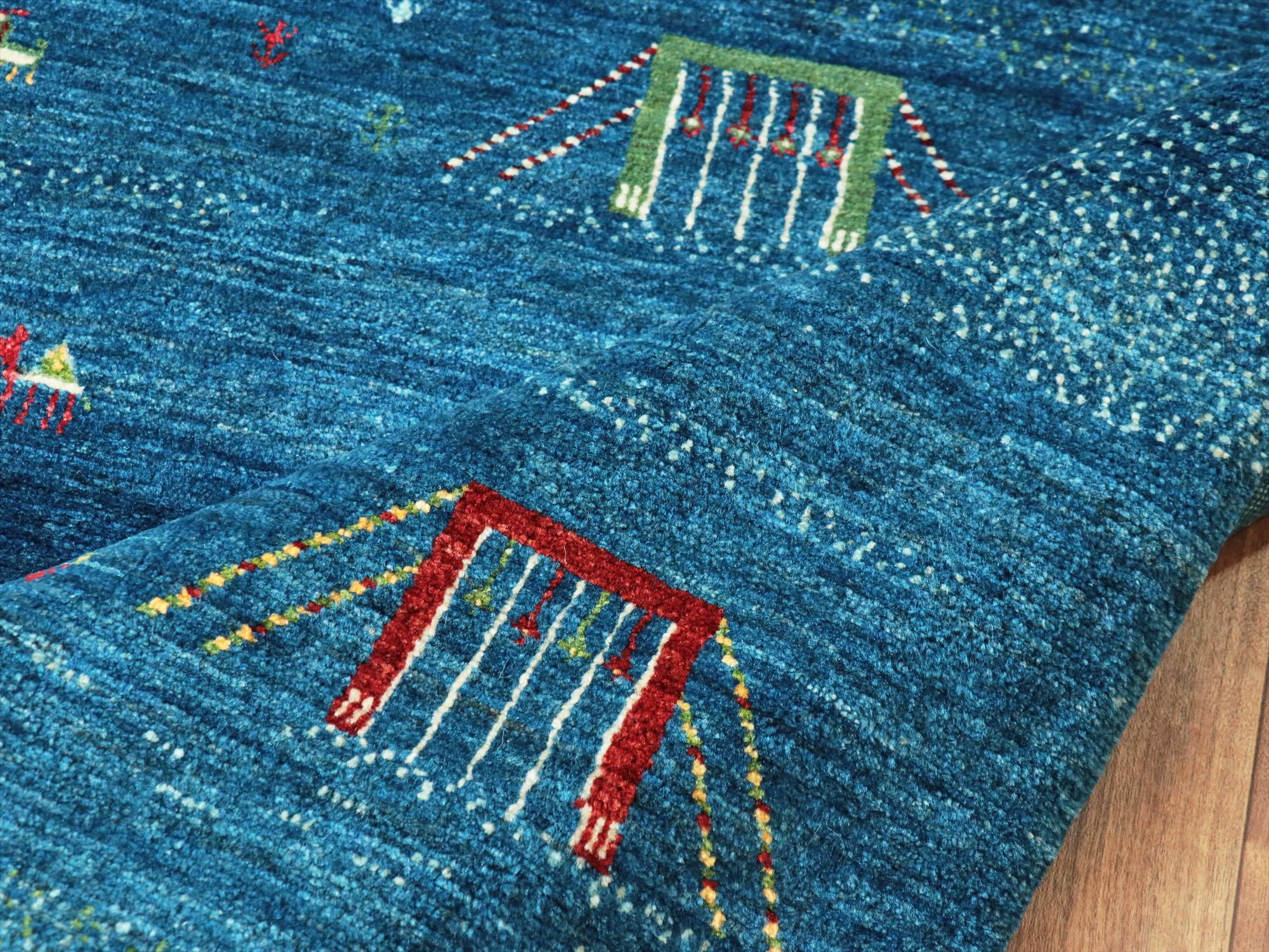 - ギャッベ/バナフシェ Banafsheh gabbeh, 179x126cm 村の風景 ブルーグラデーション