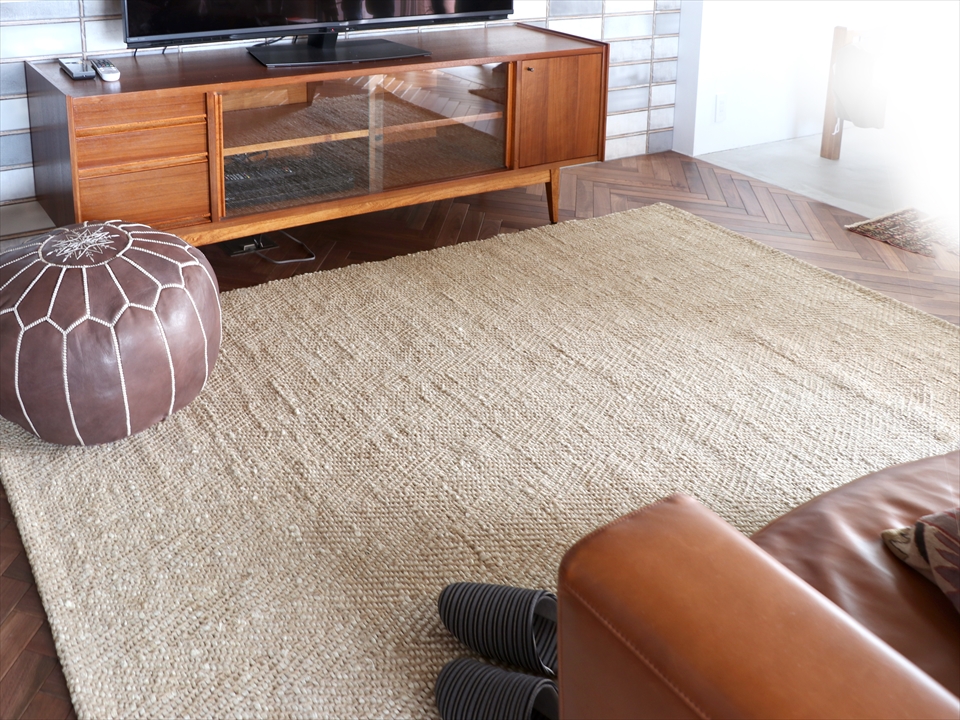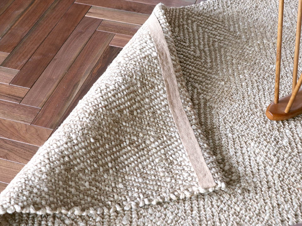 | お手入れ方法 | ・普段のお手入れは掃除機をご使用下さい。掃除機をかける際は、回転式ブラシのご使用はお控え下さい。 ・ドライクリーニング及びウェットクリーニングはできません。 ・ジュート素材の洗濯はできません。汚れやシミが付いた際には、速やかにやわらかめなブラシなどと少量の水で除去してください。 ・濡れた場合は色移りする可能性がありますので、十分に乾燥させてください。 |