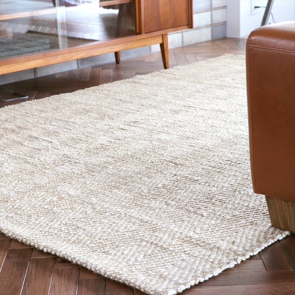 ジュートラグ 天然繊維 麻 240x170cm ヘリンボーン・生成アイボリー【同梱不可】