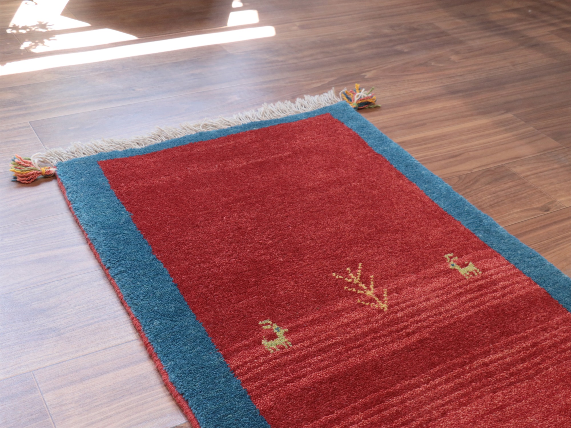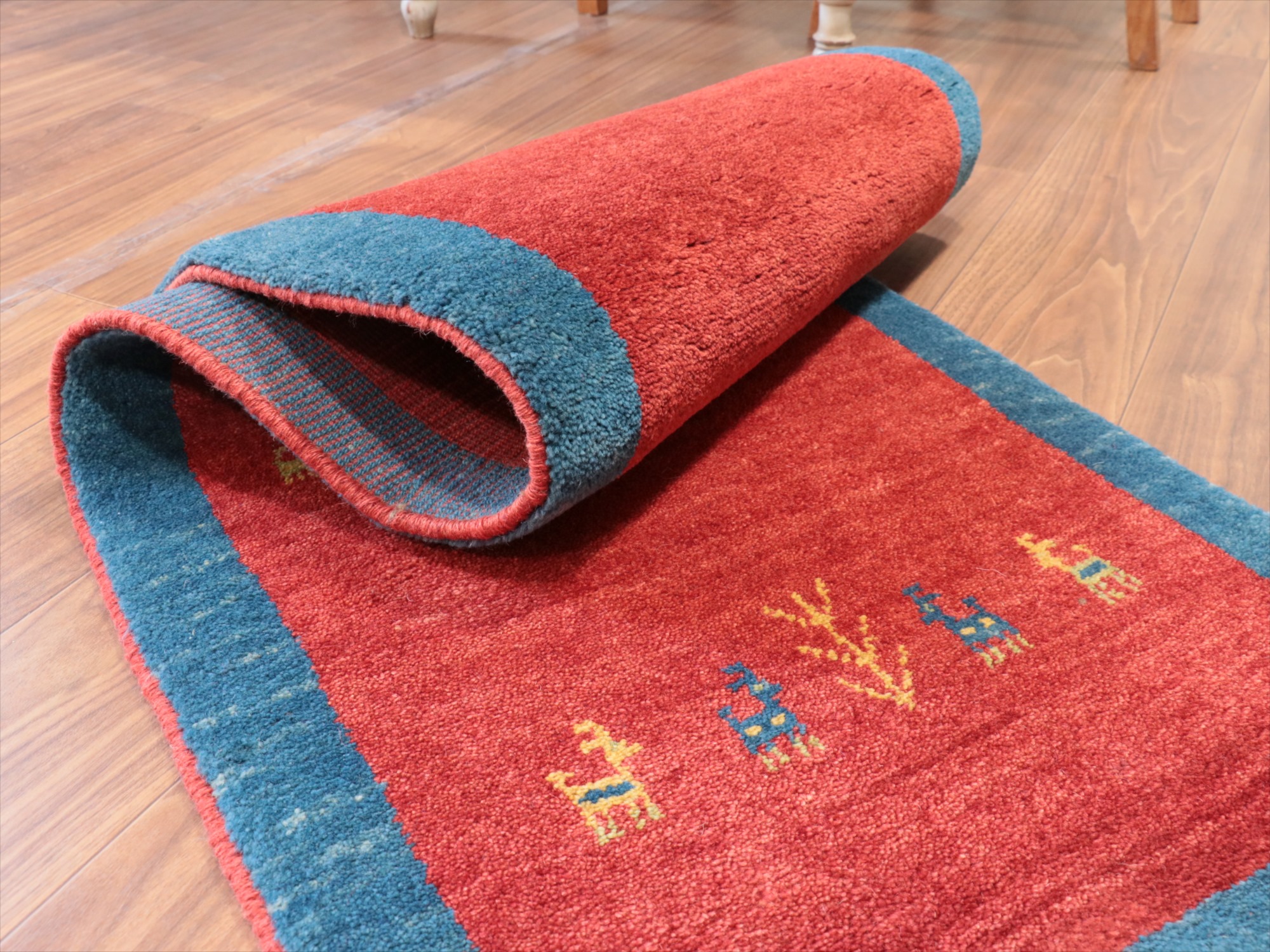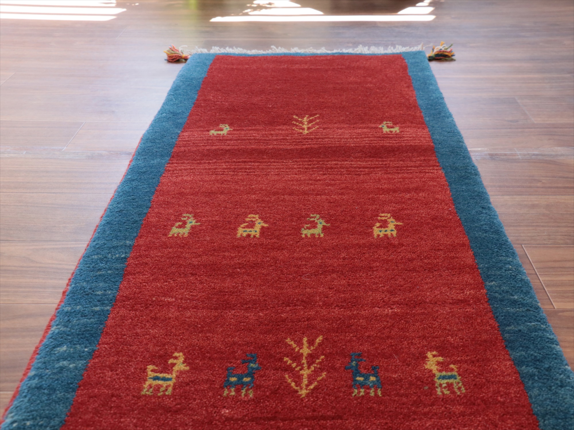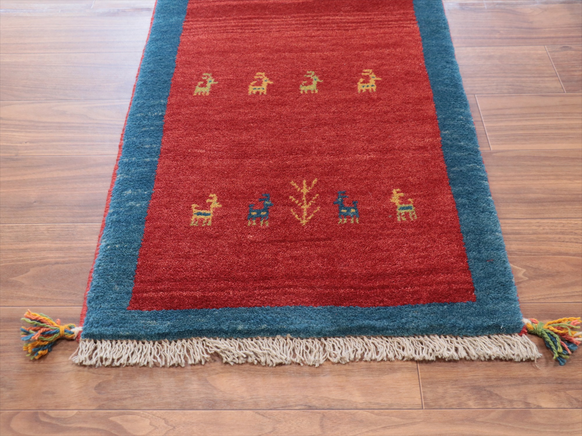 - ギャッベ プリミティブで素朴なデザイン/ 140x56cm レッド ランナー