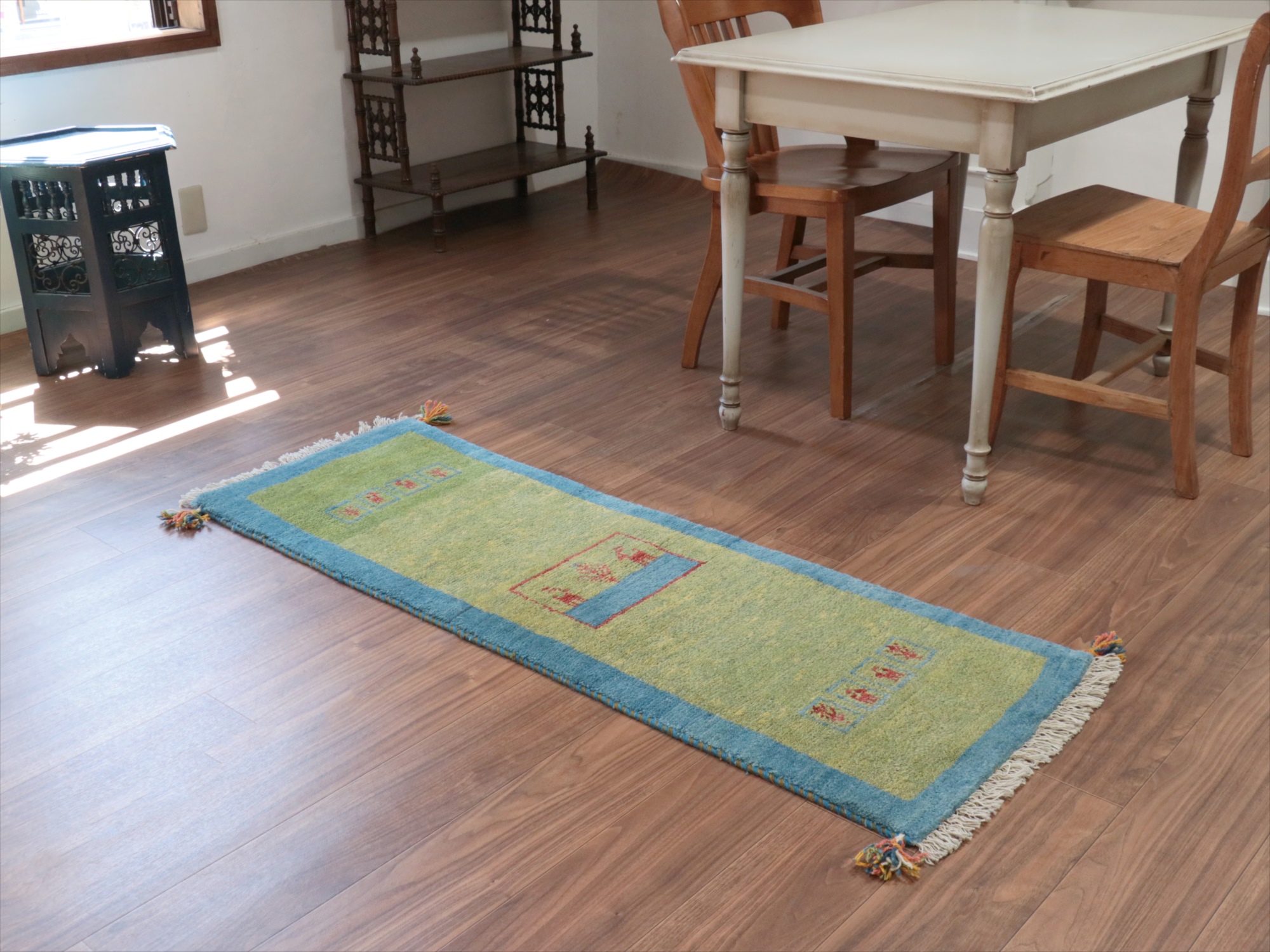 | このギャッベは、織られた年代は定かではありませんが、2000年代に織られたもので、販売されずに残っていたデッドストックです。色使いやモチーフの大きさ、デザインのバラツキなど、現代の洗練されたギャッベとは一味違う昔ながらの素朴な雰囲気が漂います。 額縁のようなボーダーのあるデザインは(特にランナーは)、2020年代にはいってからはあまり見かけなりましたので、新鮮な感じを受けます。これぞギャッベというデザインです。 |
