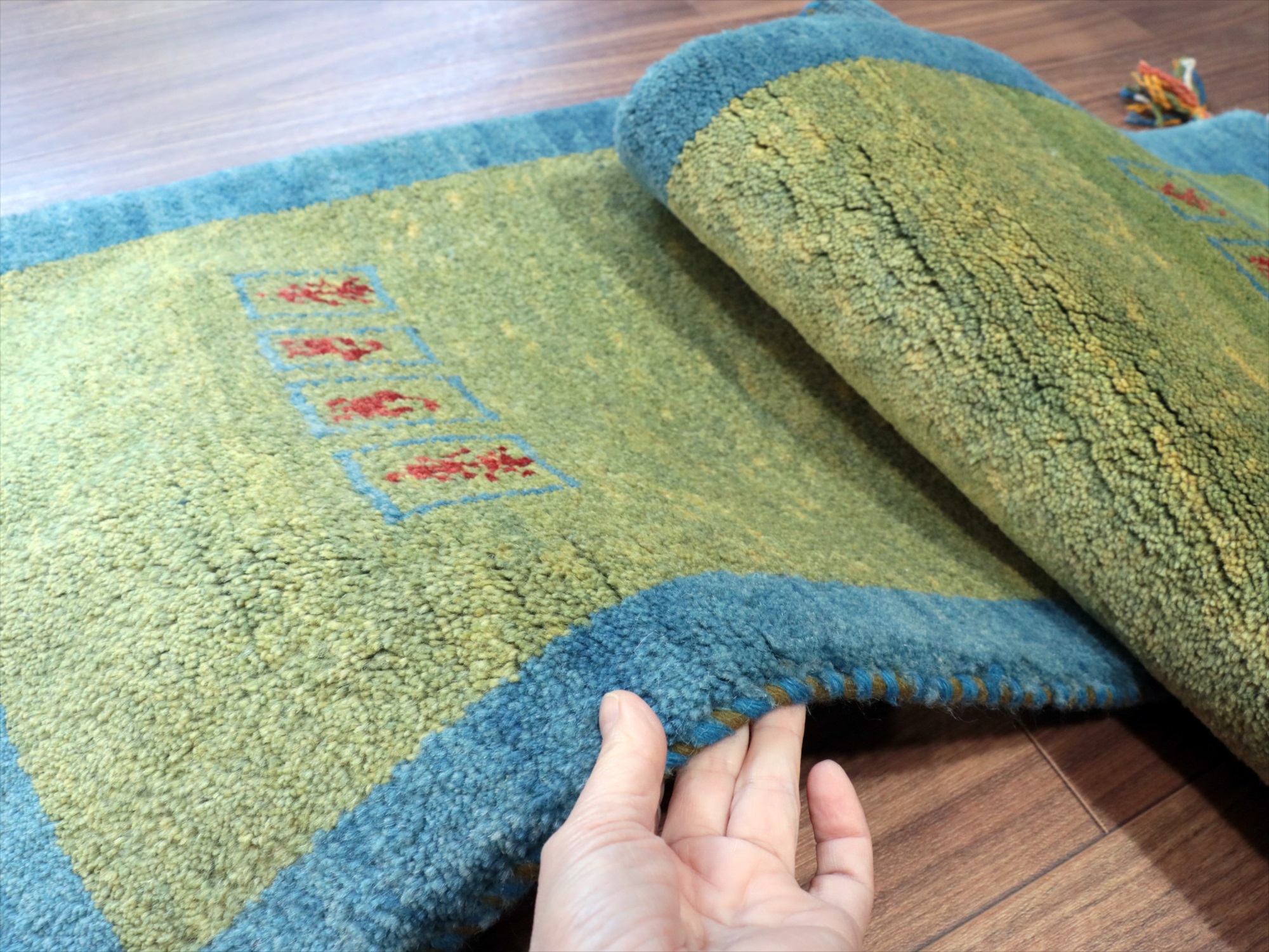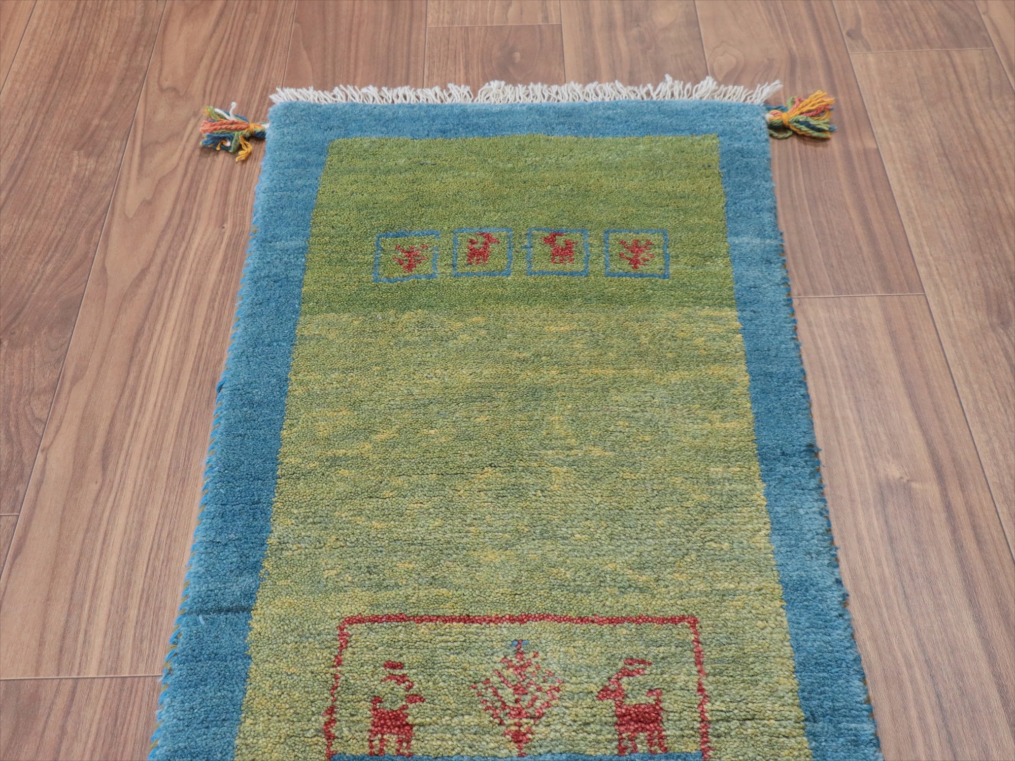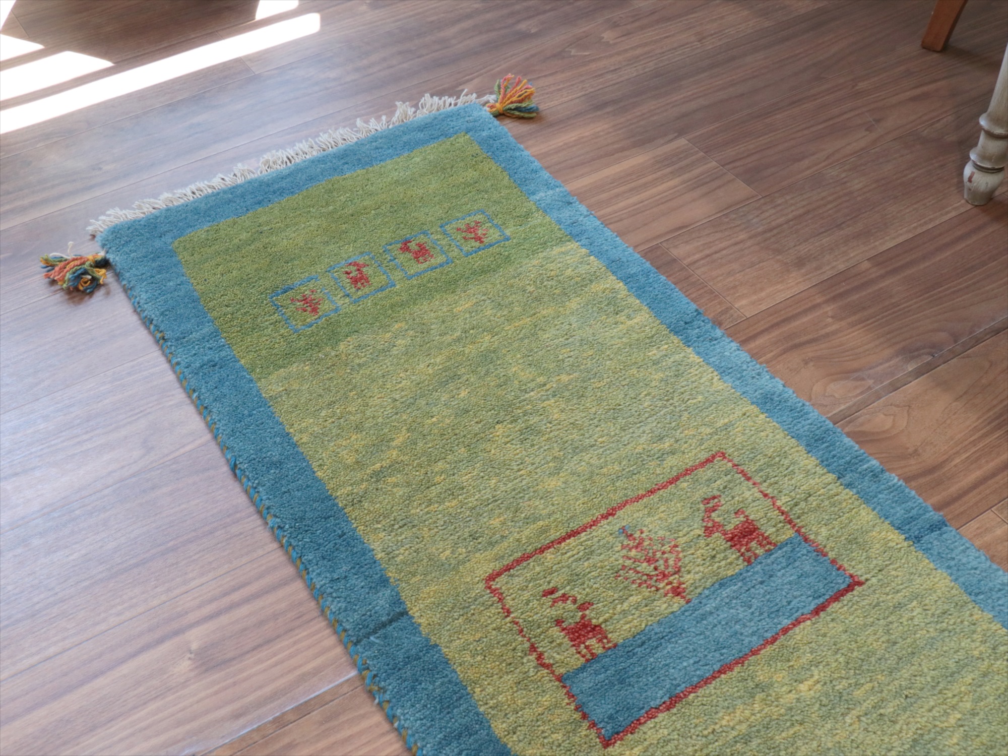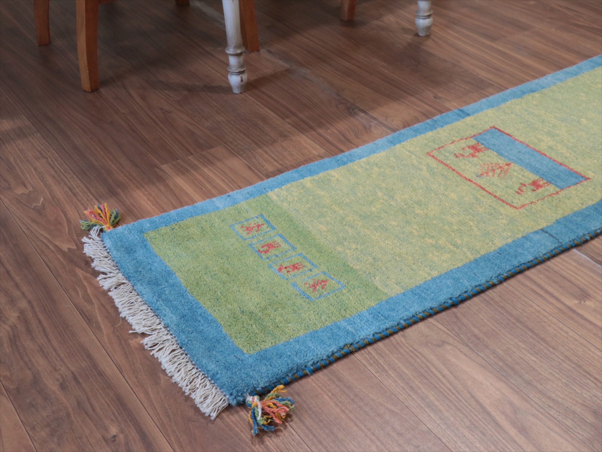 ギャッベ プリミティブで素朴なデザイン/ 143x49cm グリーン ランナー