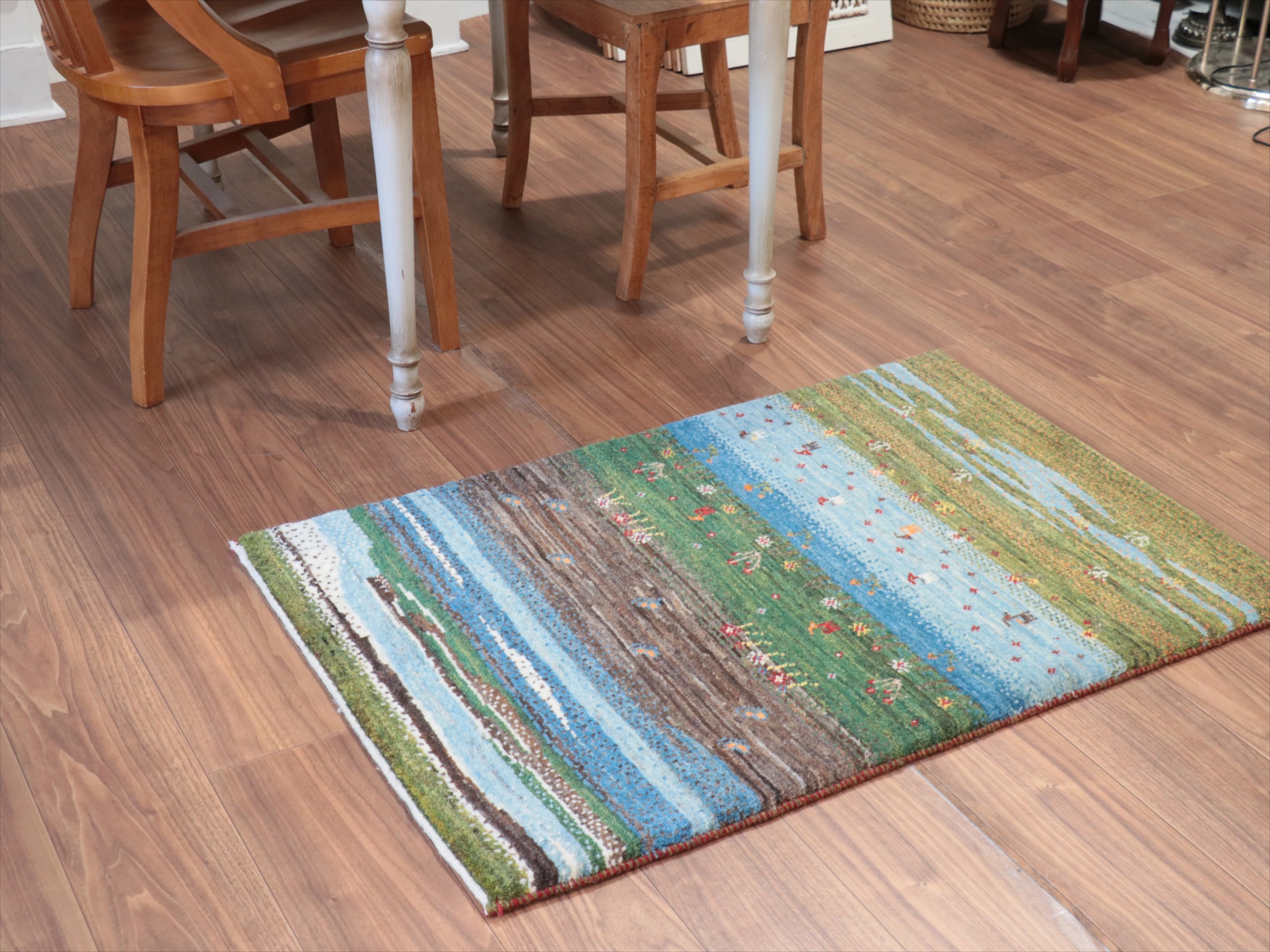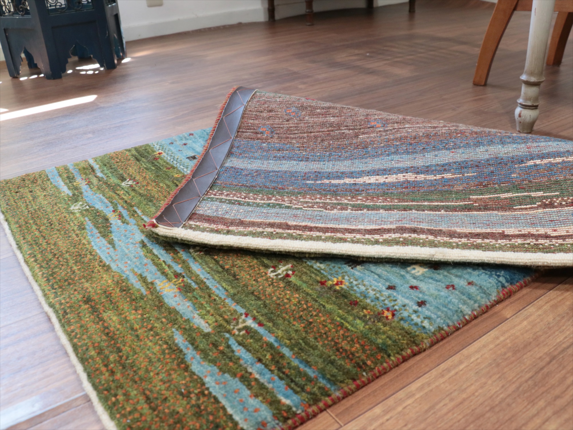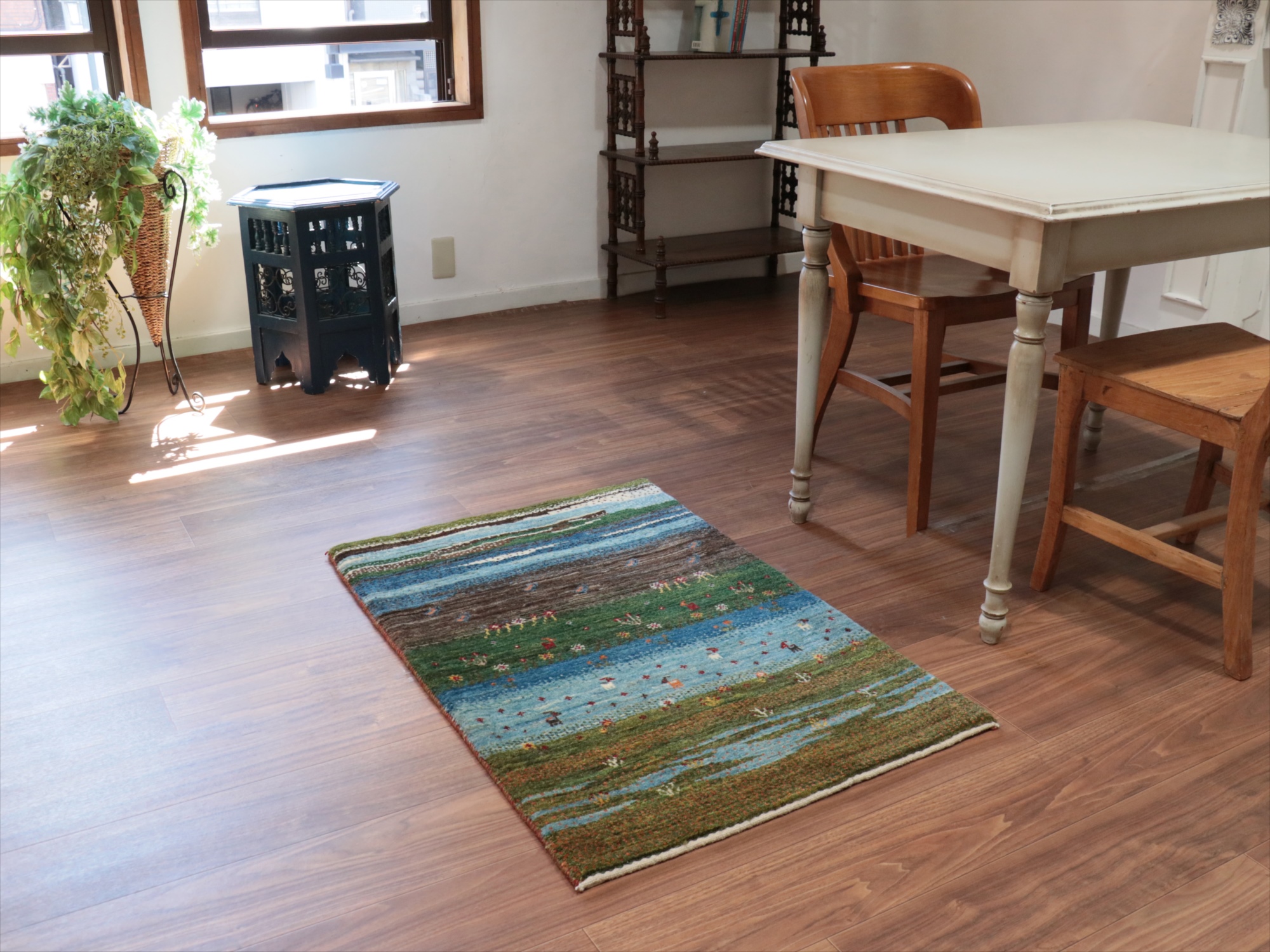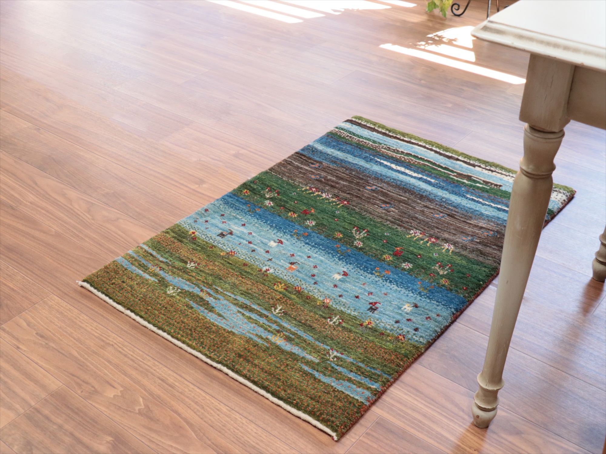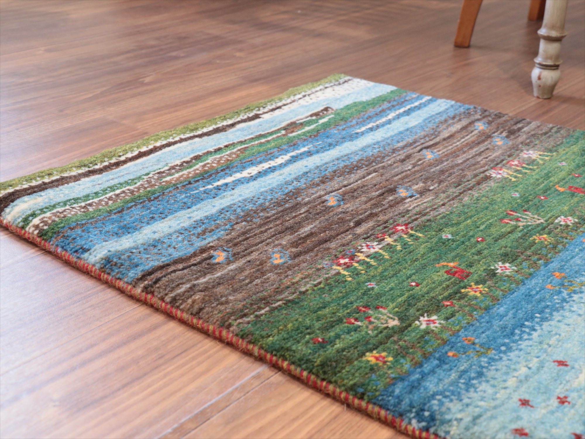 ギャッベ バナフシェ イラン産手織りラグ 101x67cm 広がる草原 風景のギャッベ