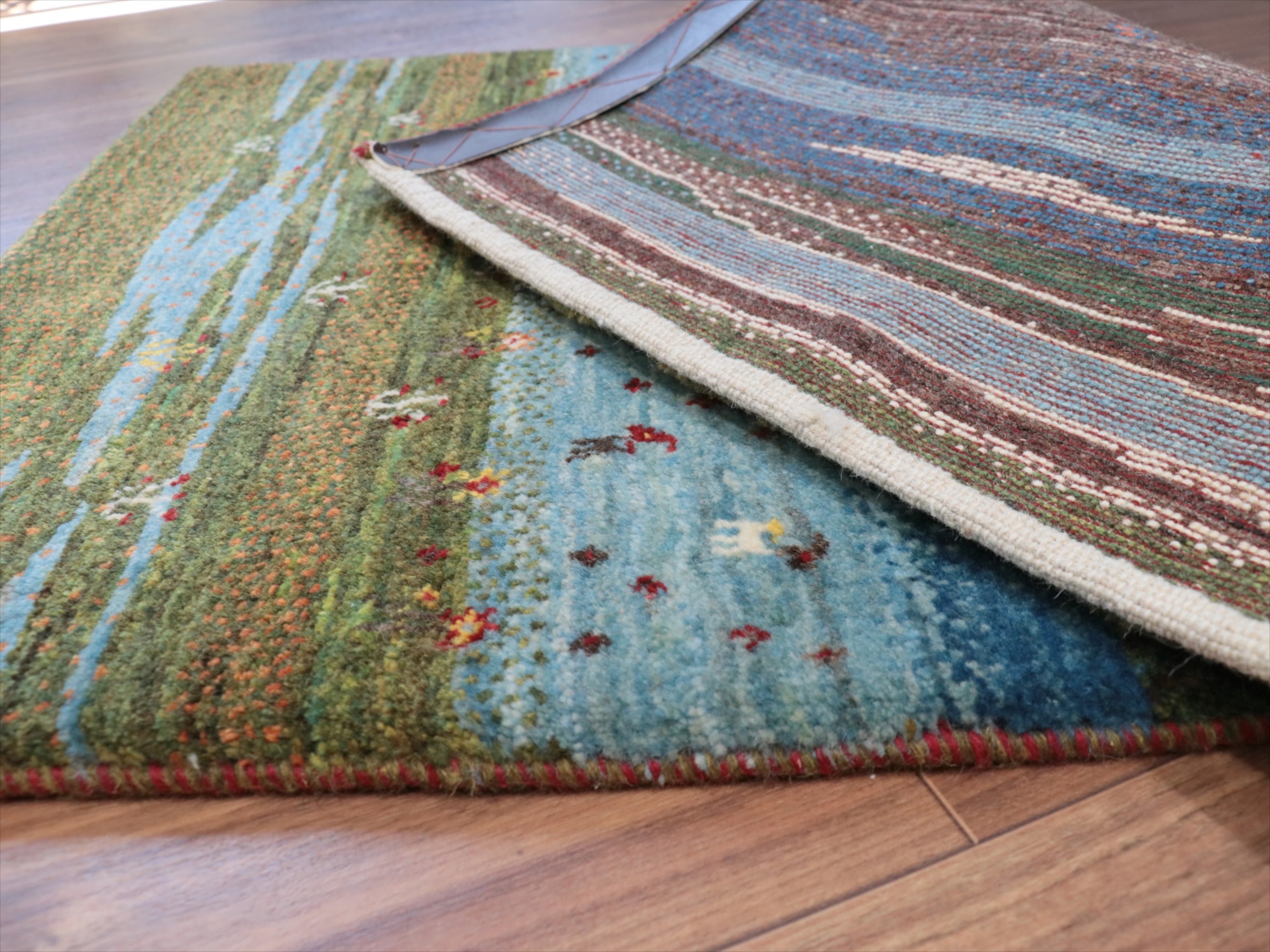 - ギャッベ バナフシェ イラン産手織りラグ 101x67cm 広がる草原 風景のギャッベ