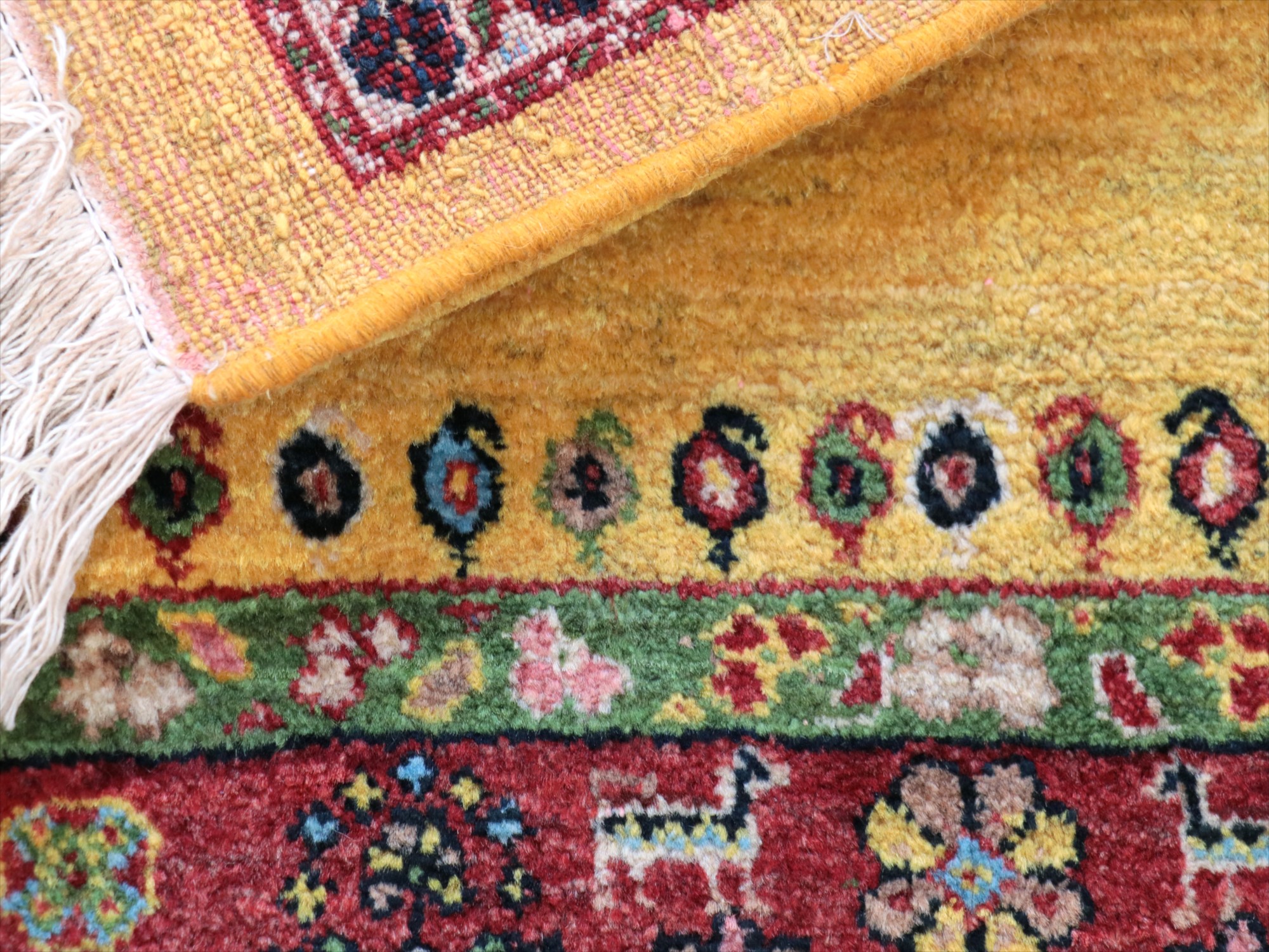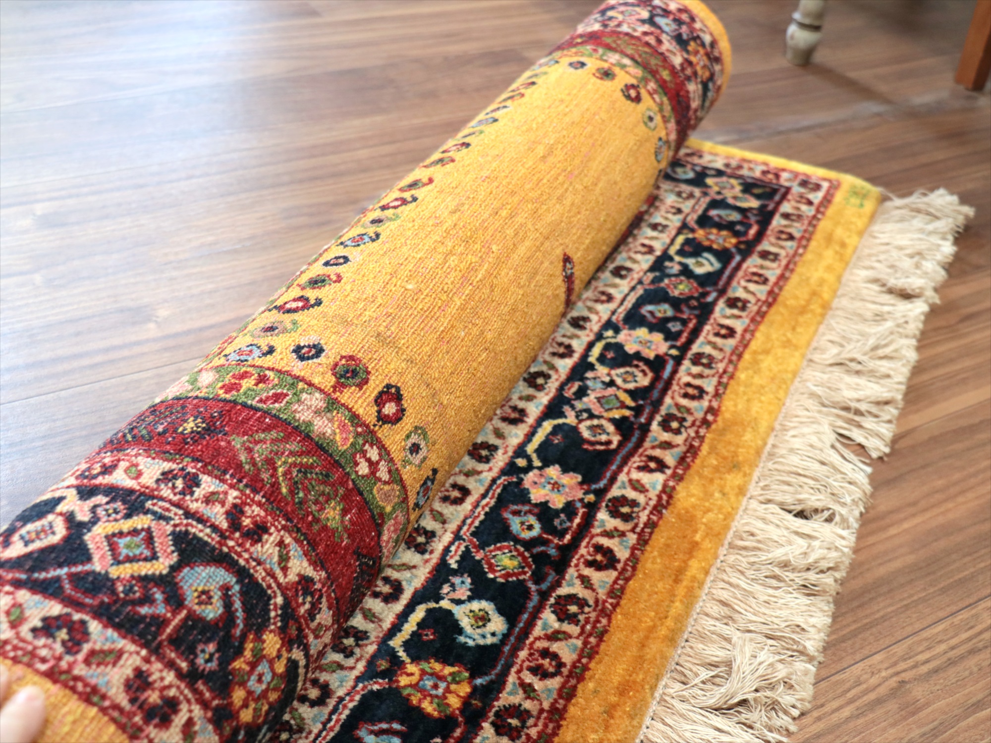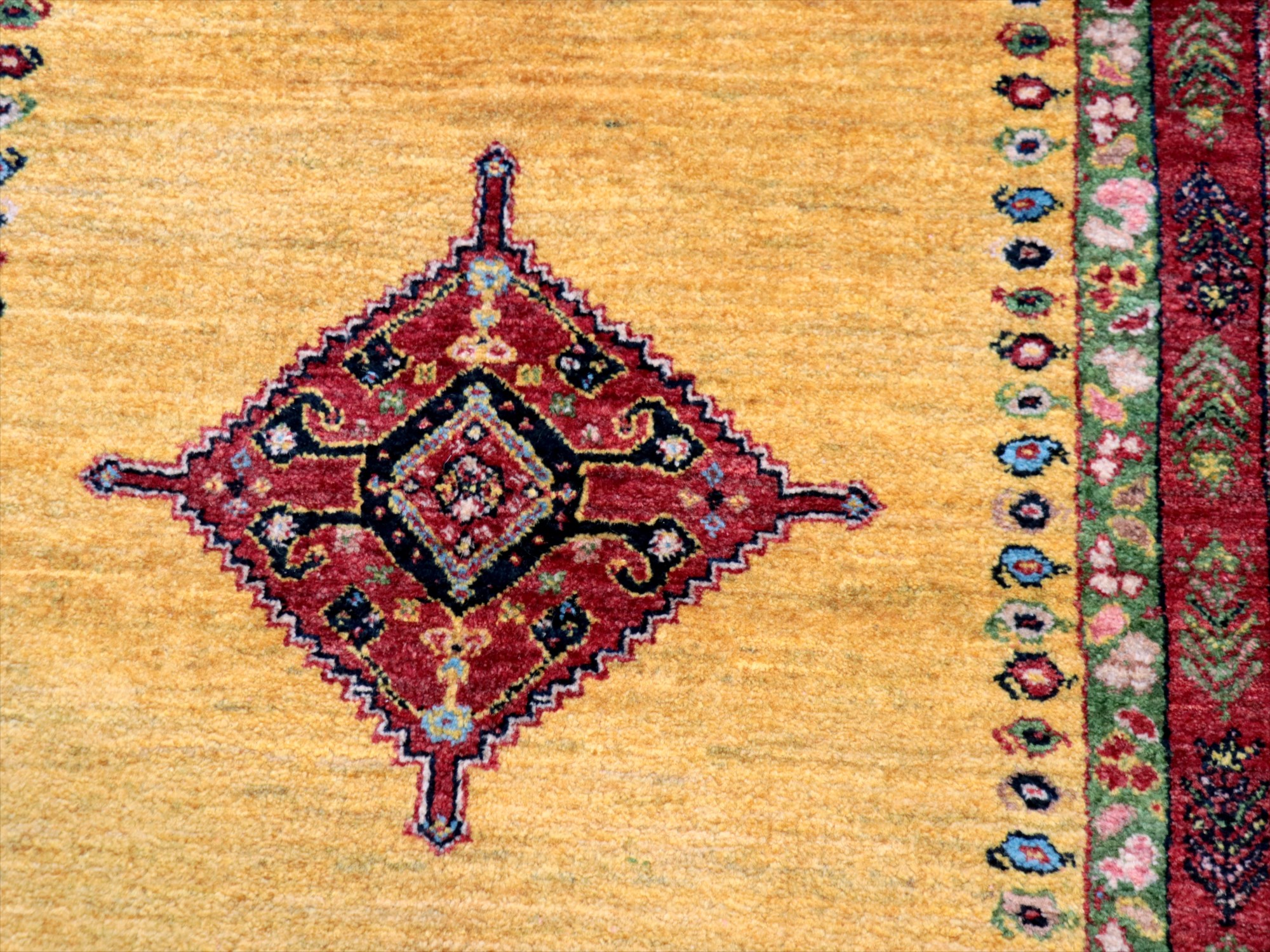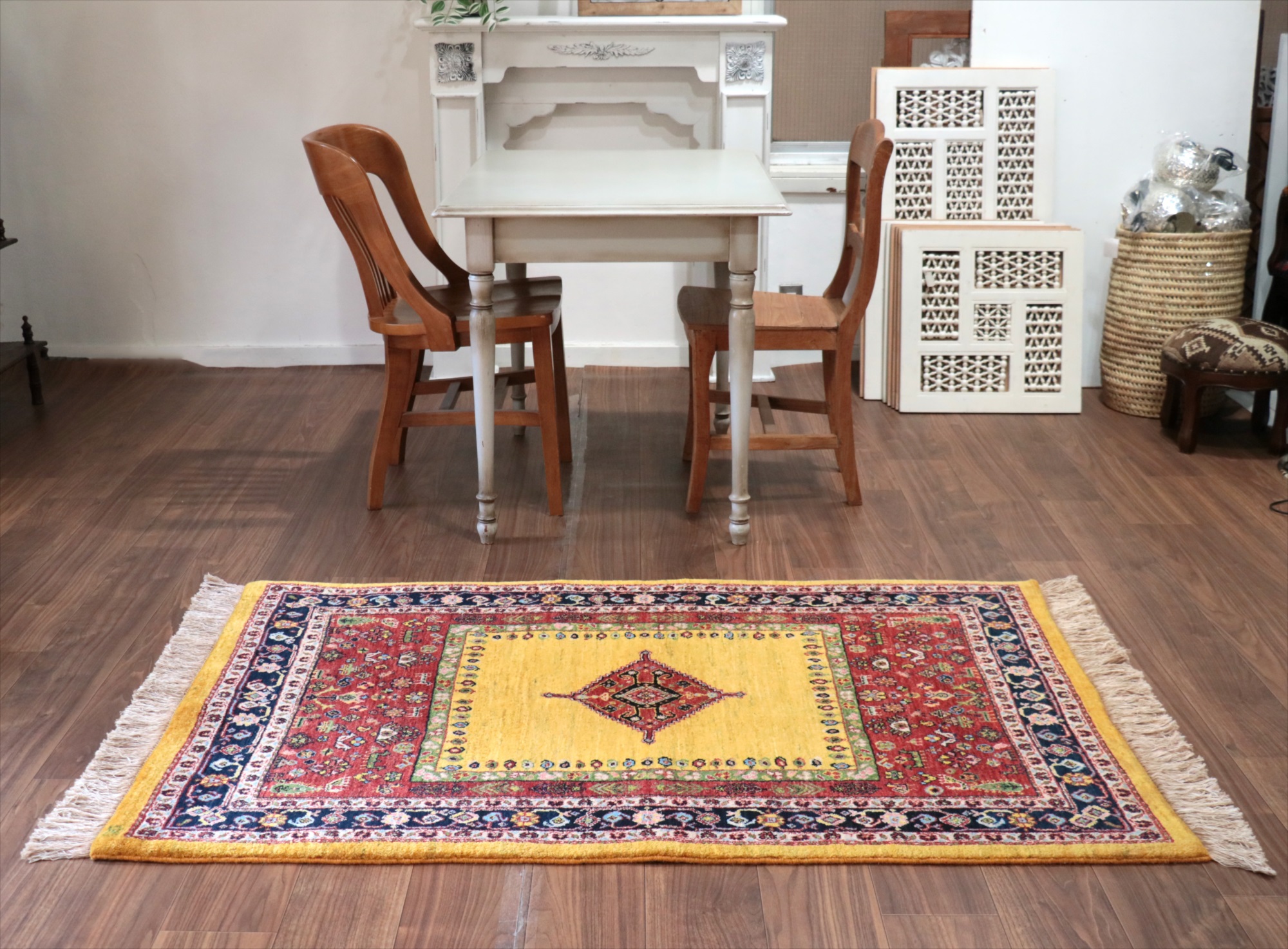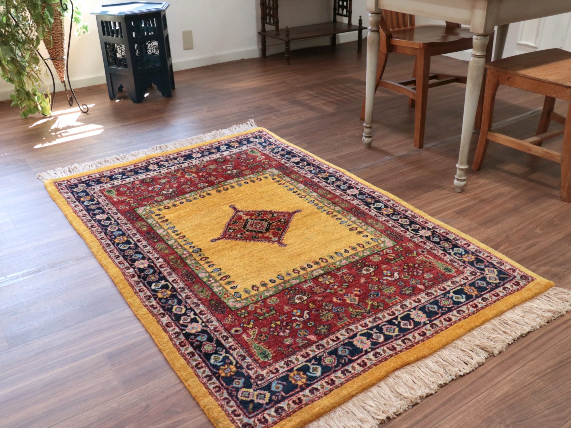 Key:Gabbeh, Tribal Rug, Hand knotted, wool, Natural dye, Shiraz, Fars, Quashkai, カシュカイ族, 伝統柄, クラシック, アンティークラグ, ヴィンテージラグ, トライバルラグ, ギャッベ, ギャベ, 細かい, ラグ, 手織り絨毯, 部族絨毯, ペルシャじゅうたん, 玄関マット, 廊下, ベッドサイド, ウール100%, イエロー, 黄色, 東京、中野区,ガラタバザール