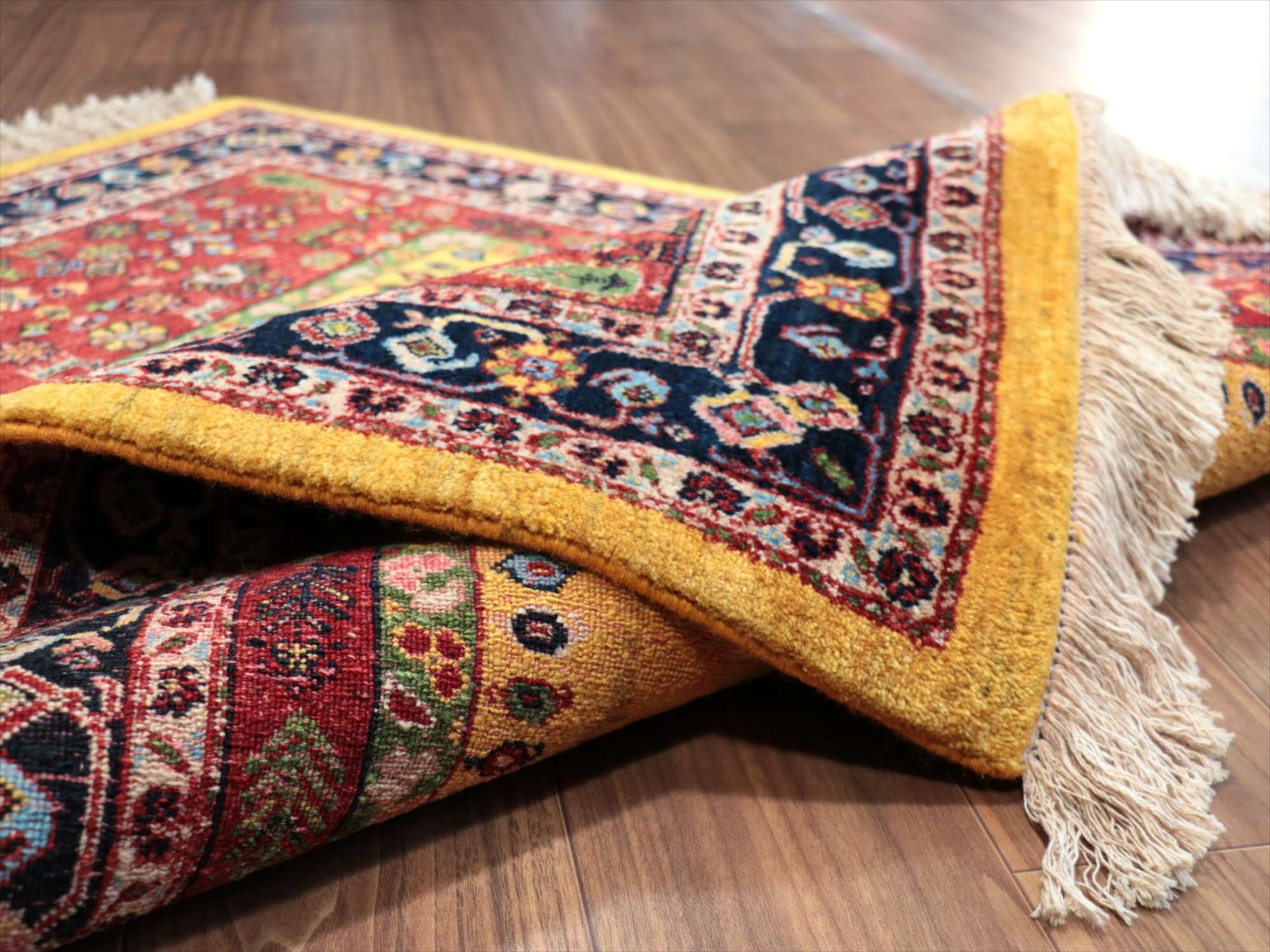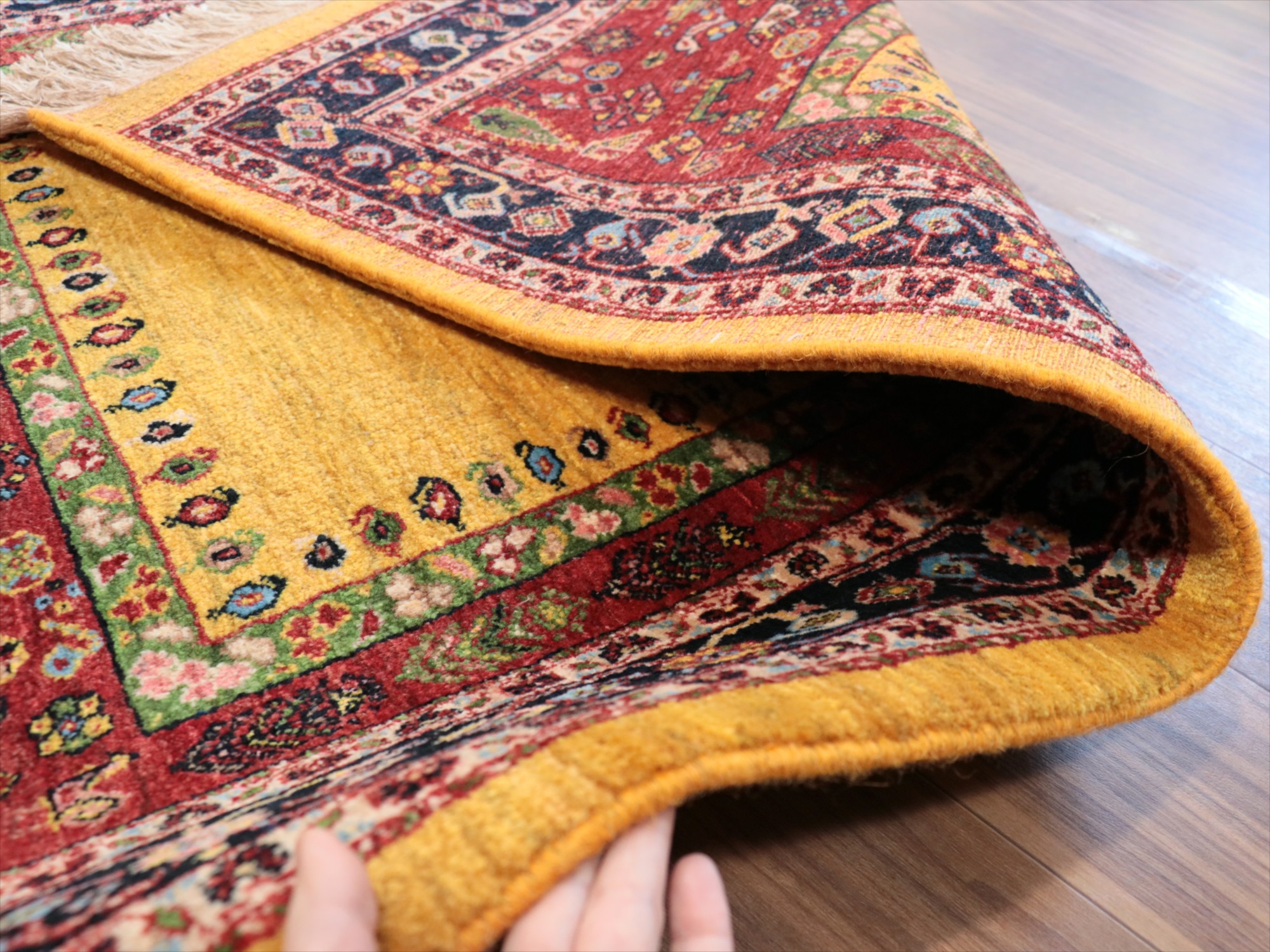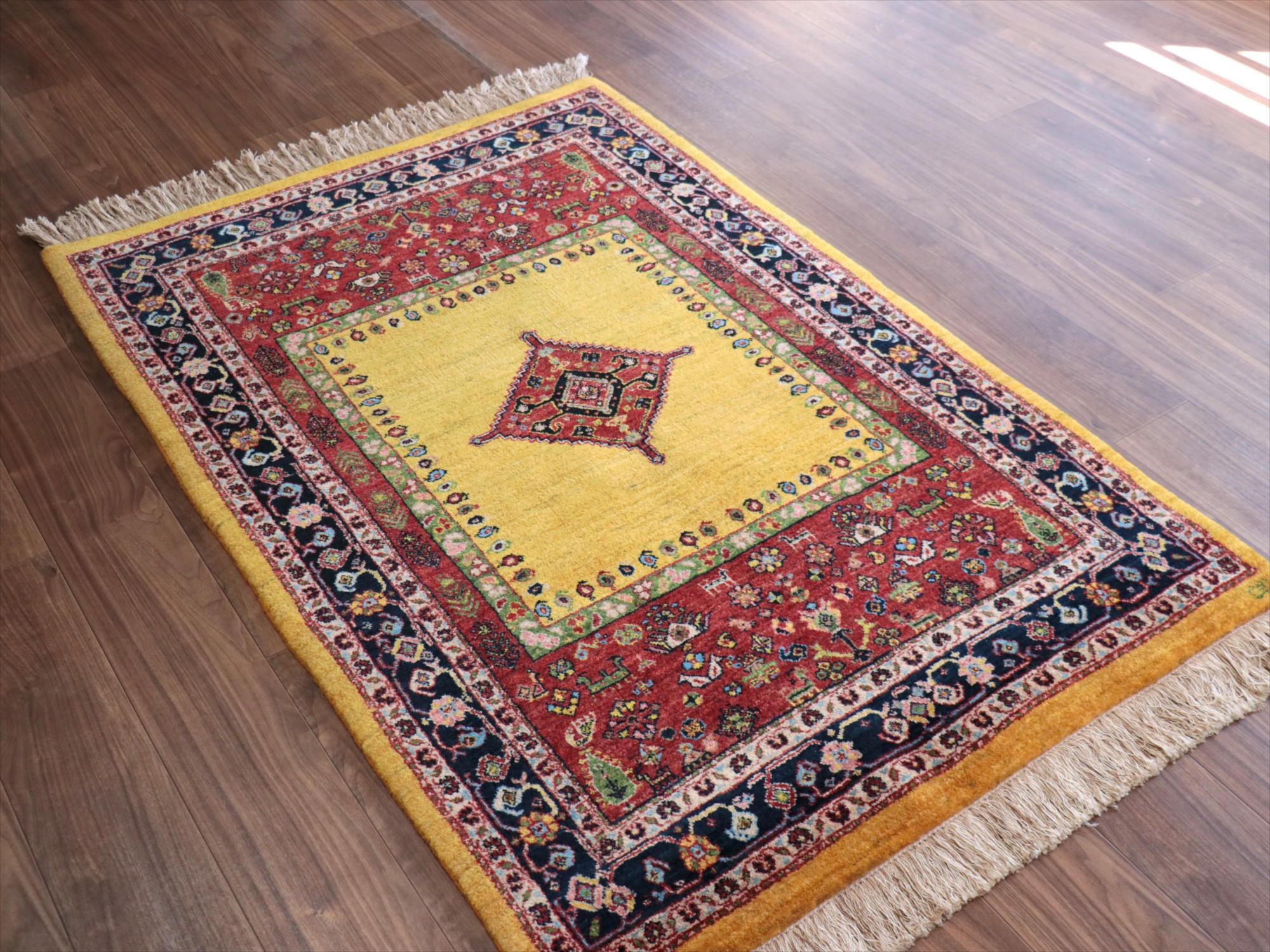 ギャッベ Luribaft/ルリバフ 152x102cm 緻密な織り イエロー レッド ネイビー クラシックデザイン メダリオン