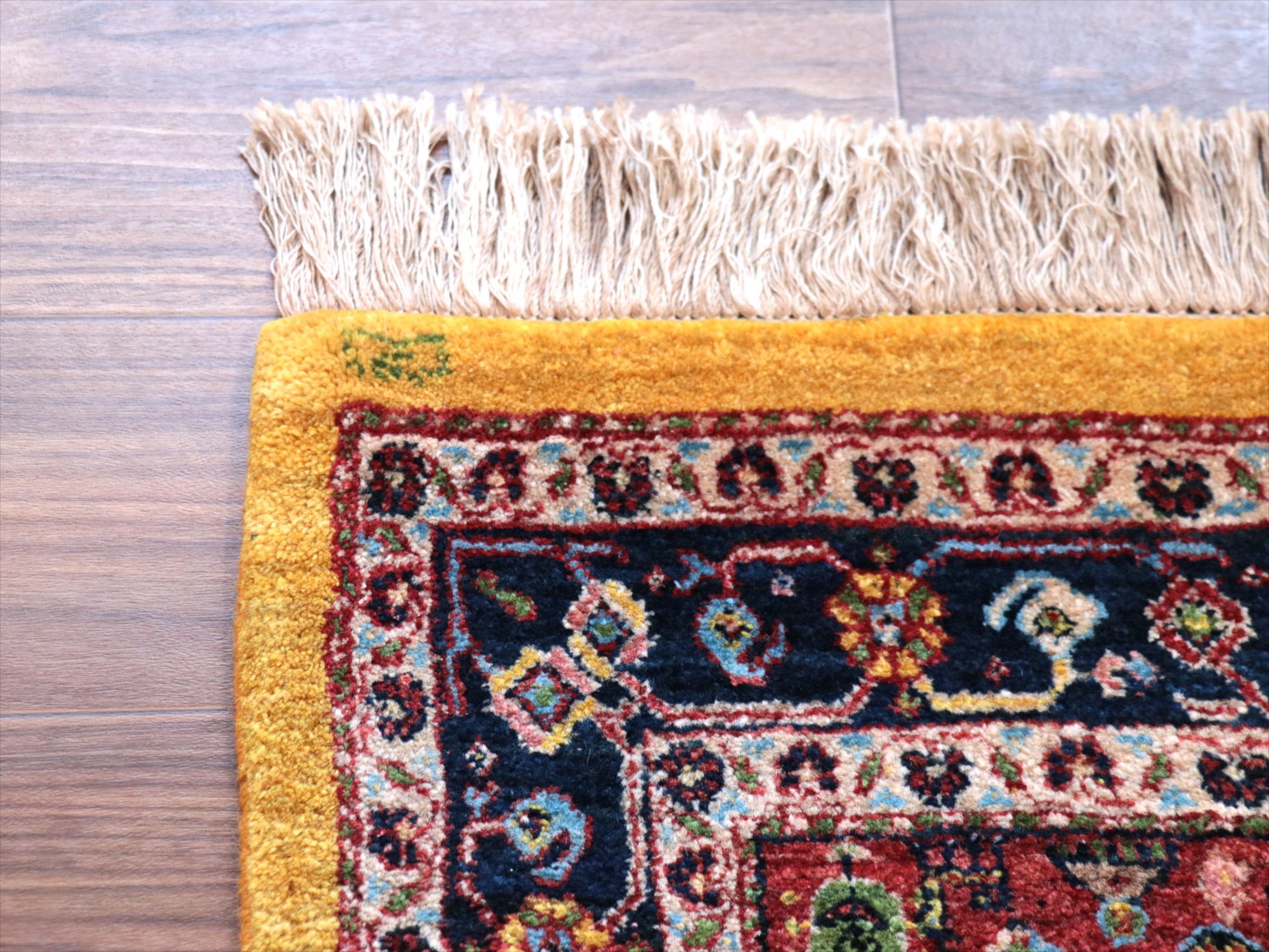 - ギャッベ Luribaft/ルリバフ 152x102cm 緻密な織り イエロー レッド ネイビー クラシックデザイン メダリオン