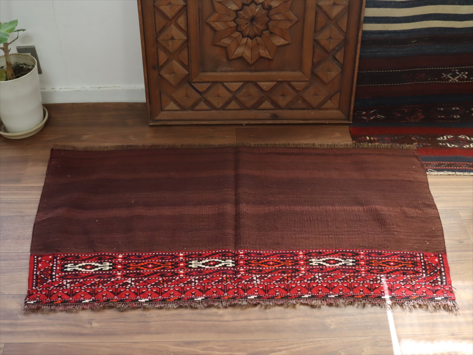 オールドキリム/トルクメン・ヤムート67×128cm 収納袋チュアルを開いたフラグメント ブラウン/レッド