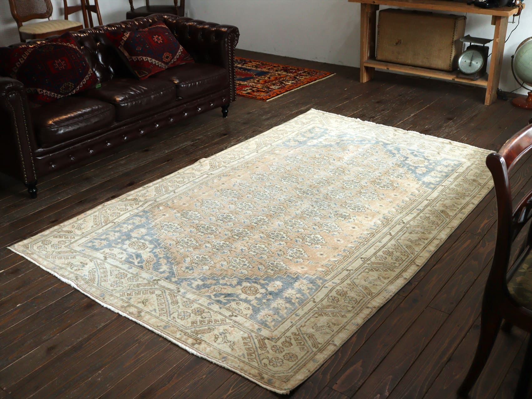 Key:Antique Rug, Recyle rug, reclamation rug, vintage, Turkish Carpet, Vintage wash, Bleach, Hand knotted, Pure wool, BO-HO, Moroccan Interior, トライバルラグ, トルコ絨毯, オーバーダイド, 後染め, リサイクルラグ, リクラメーション, エリアラグ, 手織り, じゅうたん, ヴィンテージ, アンティークラグ, パステル, シャビーシック,店舗什器, 店舗用, アパレルショップ,ラグ