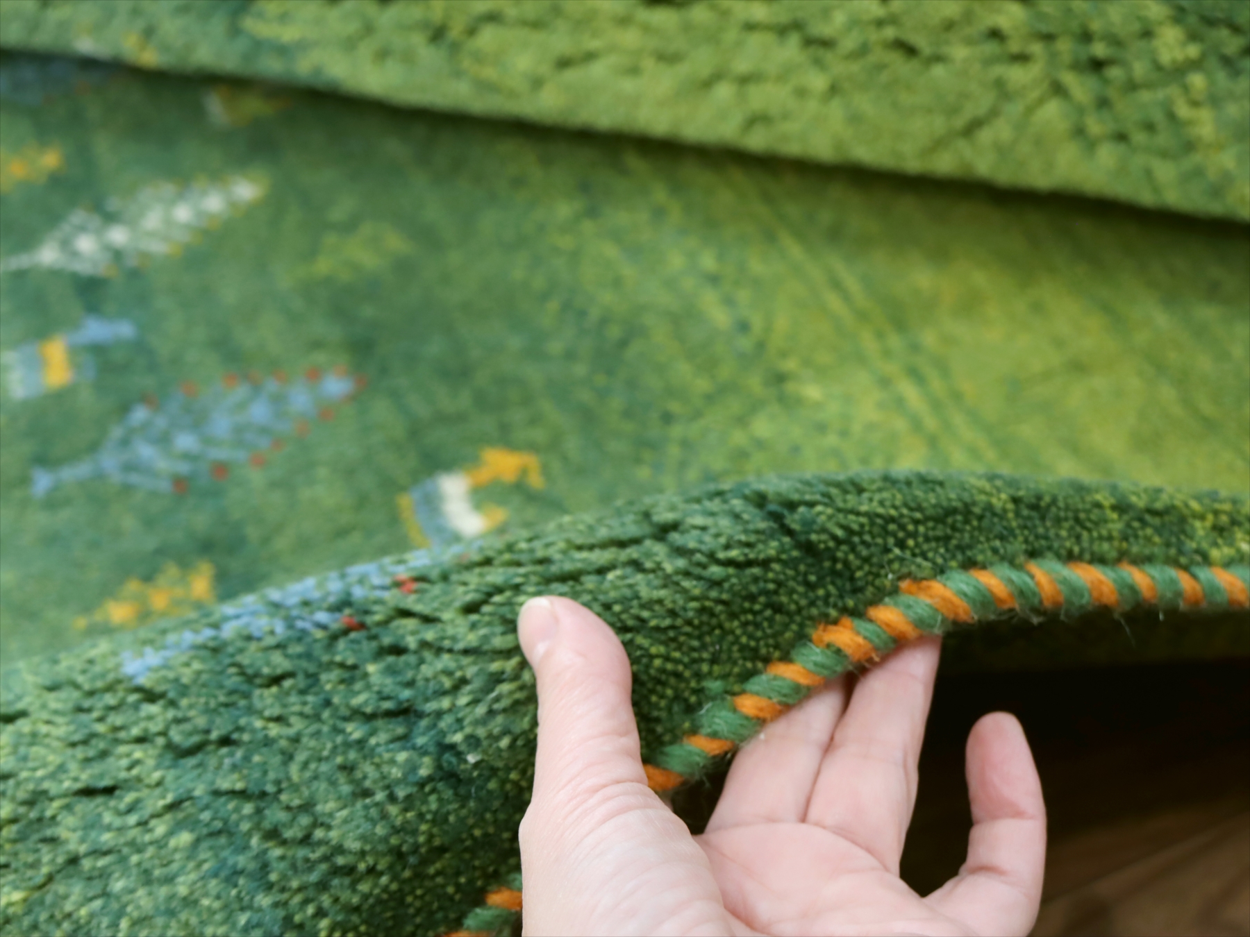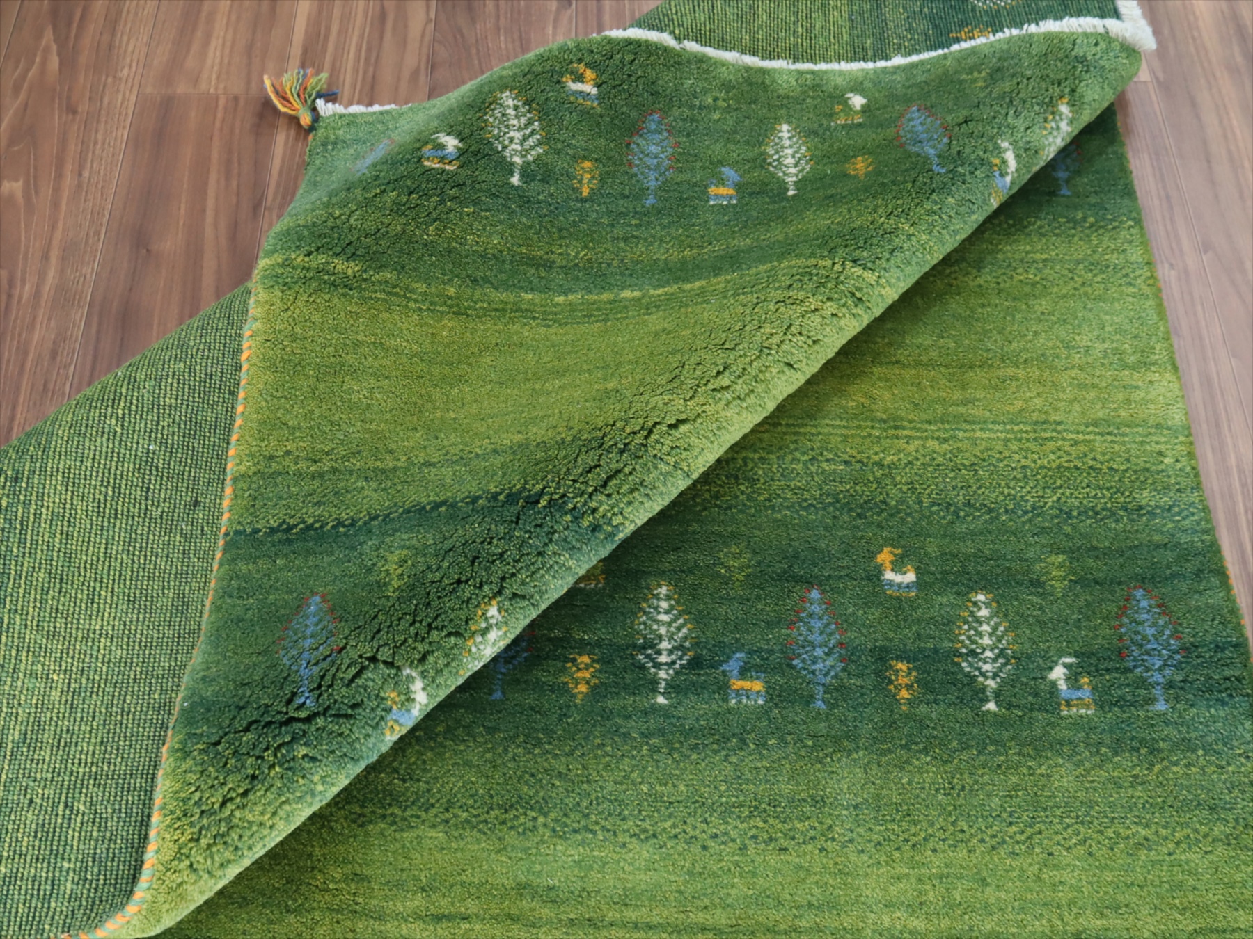 - ギャッベ イラン産手織り 190x150cm グリーングラデーション 毛足の長いふかふかな織り