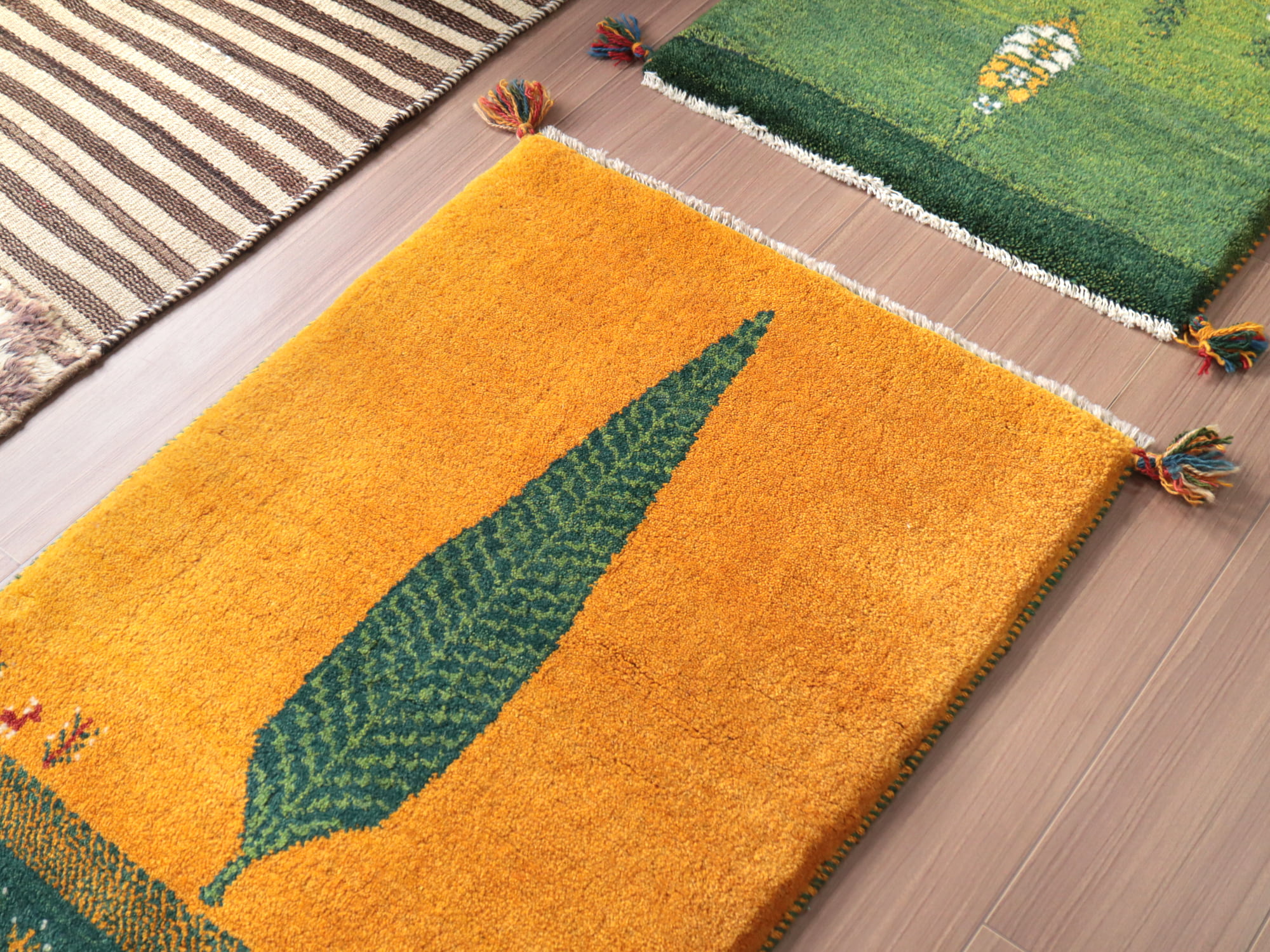 ギャッベ イラン産手織り 88×65cm イエロー オレンジ イトスギ