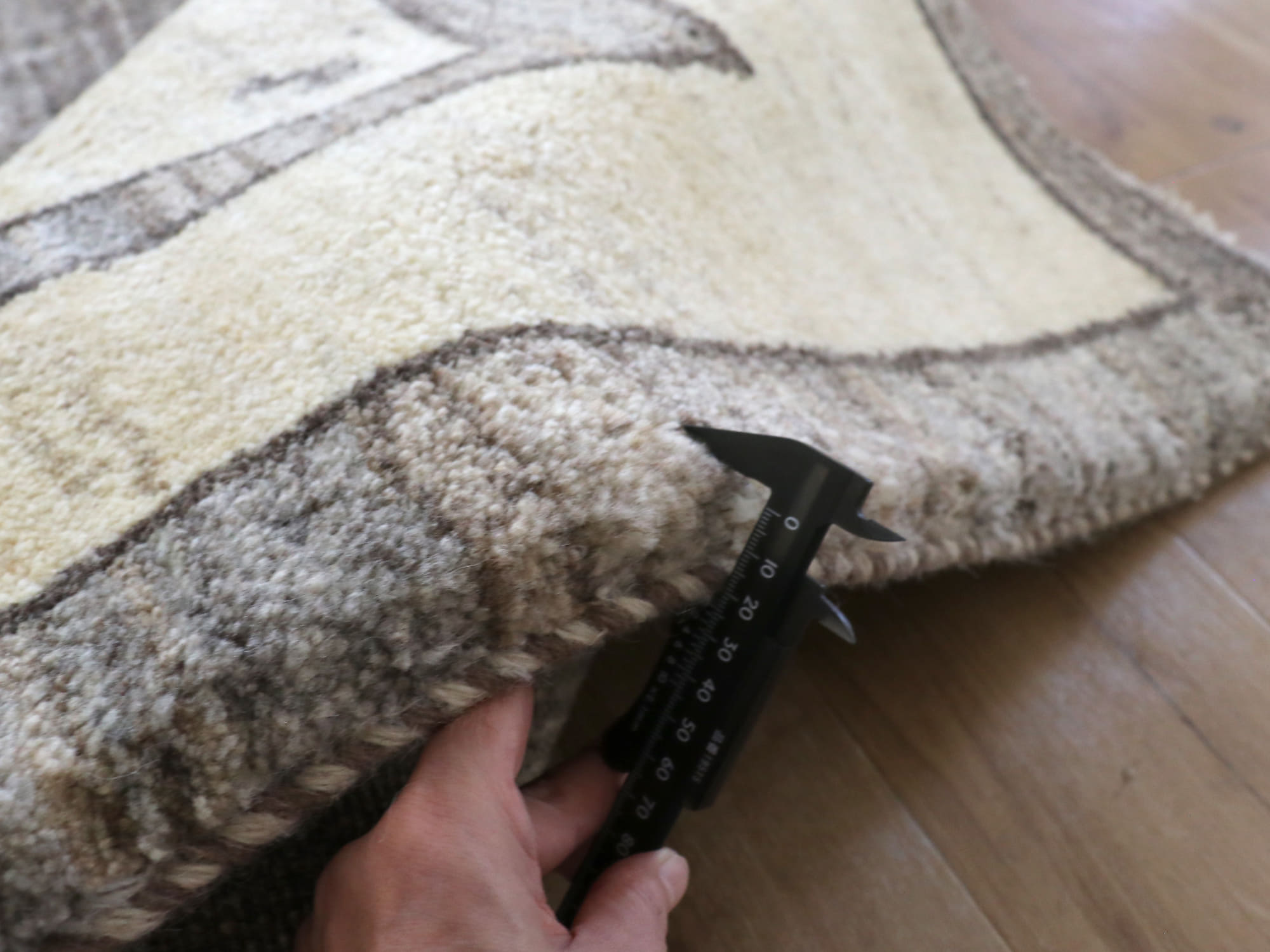 | 毛足が長く、ふかふかの厚みのある織り地。ボリュームたっぷりで、「毛足の長いラグ」を表すギャッベという意味のとおりの、伝統的なスタイルで織られています。 |