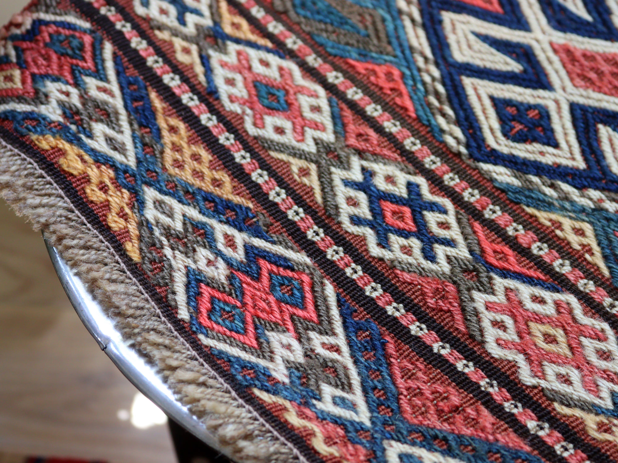 | 箱型の収納ケース・マフラシュ(トルコではベシックと呼ばれます)のサイド部分に使われていた小さなキリム。小さいながら、このサイズでオリジナルで織られたということもあり、コレクションピースになっています。 |