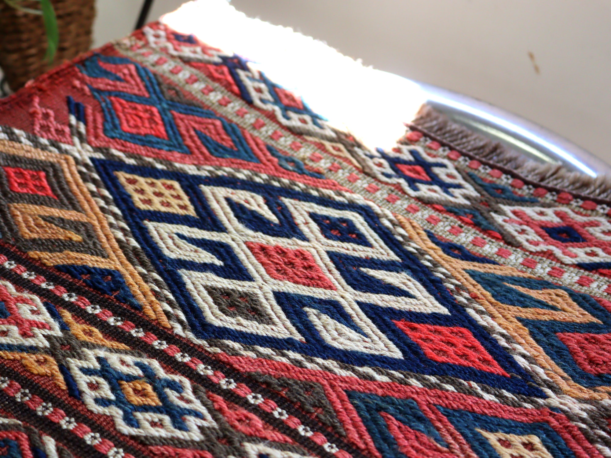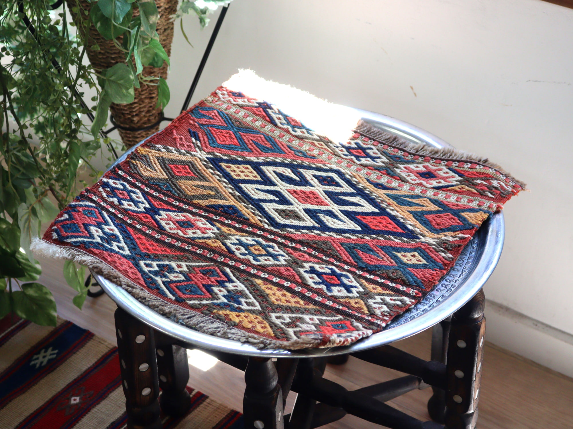 | 箱型の収納ケース・マフラシュ(トルコではベシックと呼ばれます)のサイド部分に使われていた小さなキリム。小さいながら、このサイズでオリジナルで織られたということもあり、コレクションピースになっています。 |