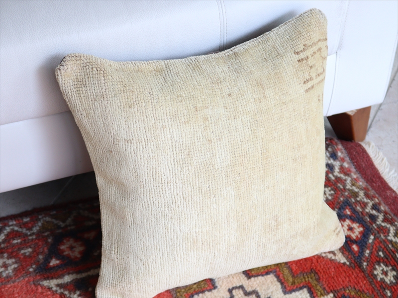 トライバルラグ クッションカバー 40cmサイズ トルコ絨毯 ブリーチしたアンティーク加工