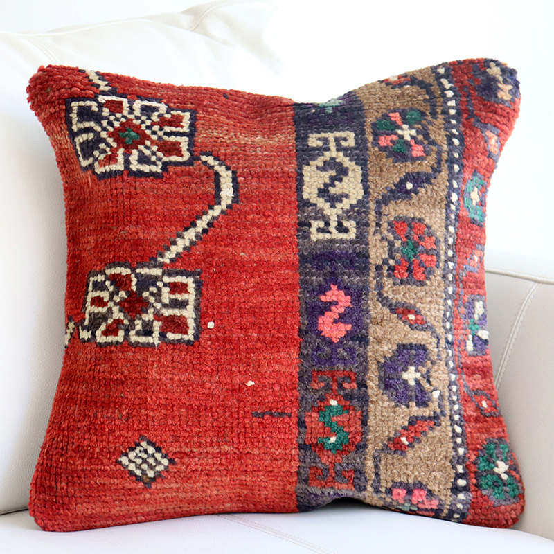 ヴィンテージラグ クッションカバー パイル織りラグ クッションカバー40cmサイズ <br>トルコ絨毯