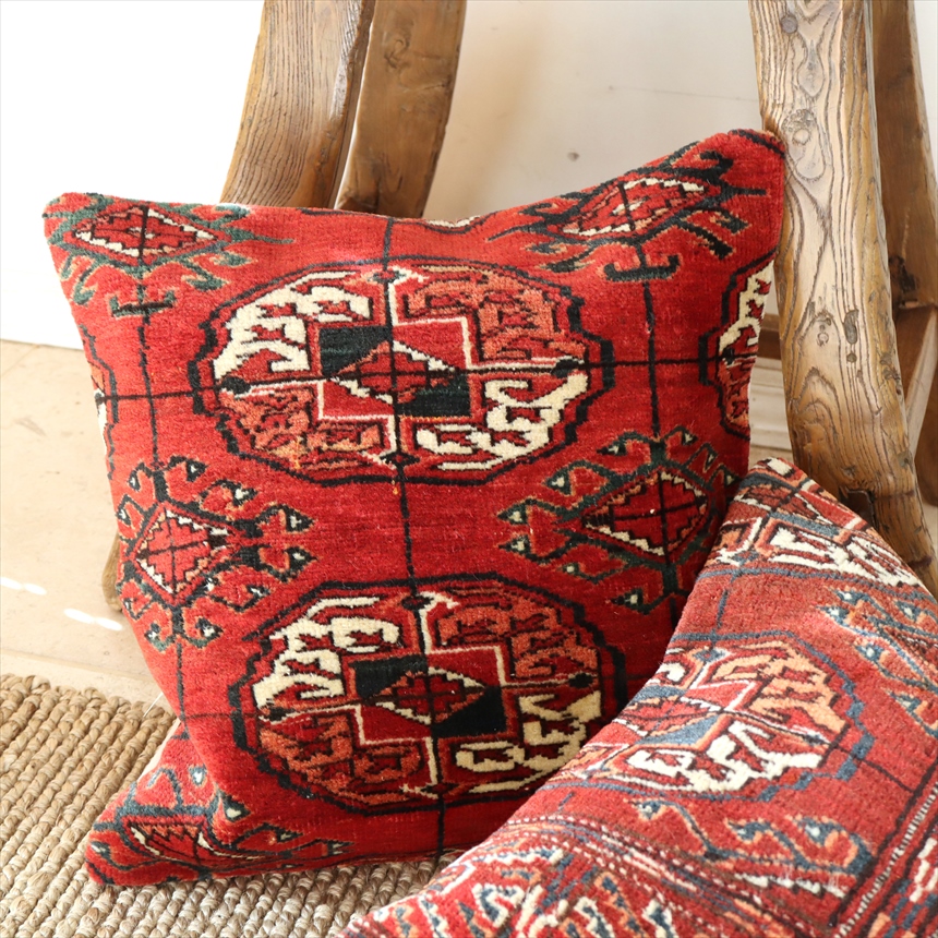 4. クッションカバー ヴィンテージ パイル織り 絨毯 40cmサイズ トルクメン ヤムート レッド