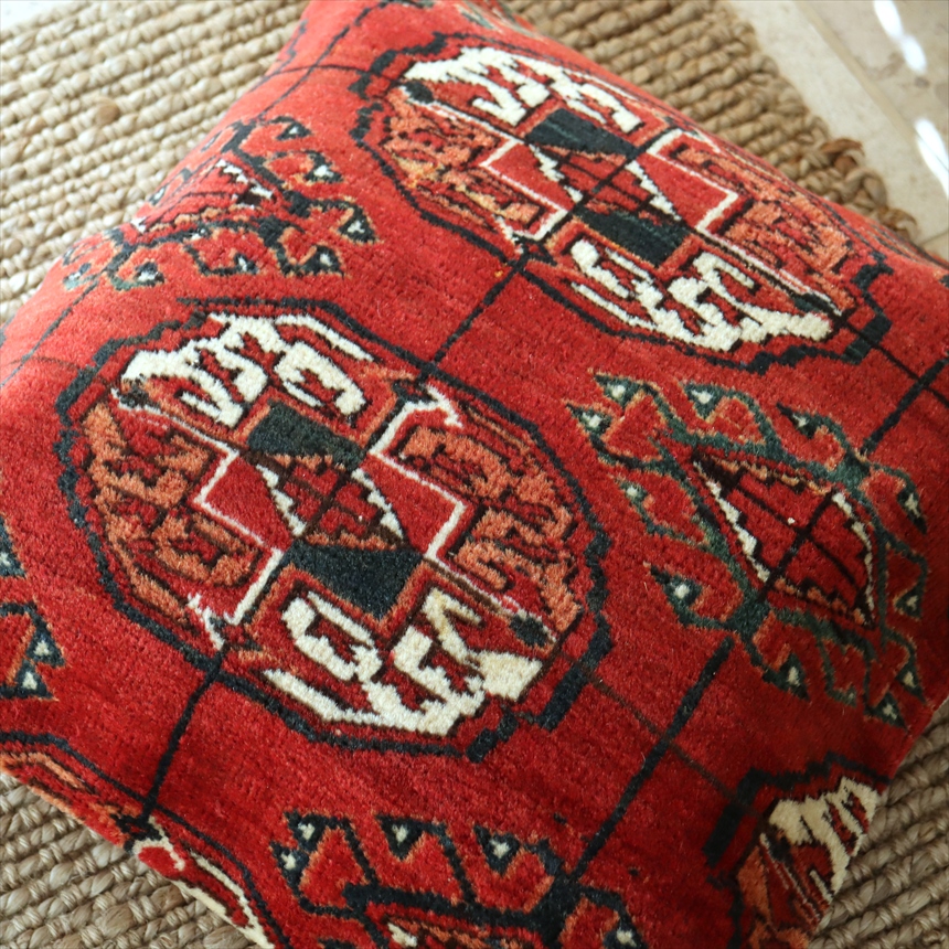 クッションカバー ヴィンテージ パイル織り 絨毯 40cmサイズ トルクメン ヤムート レッド