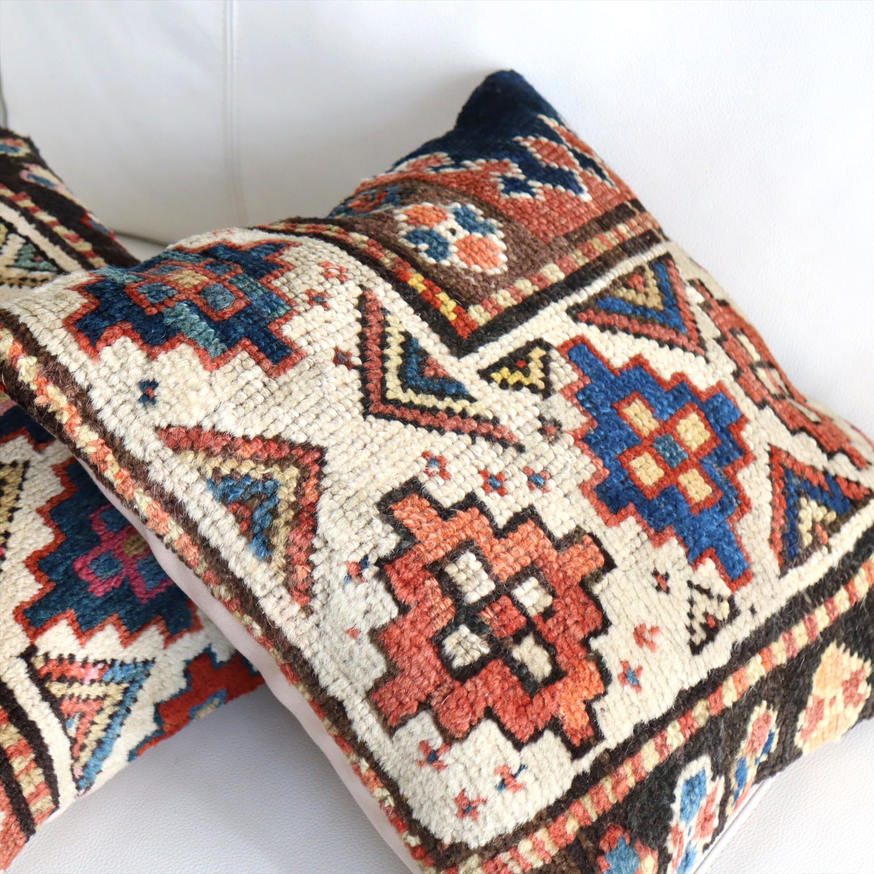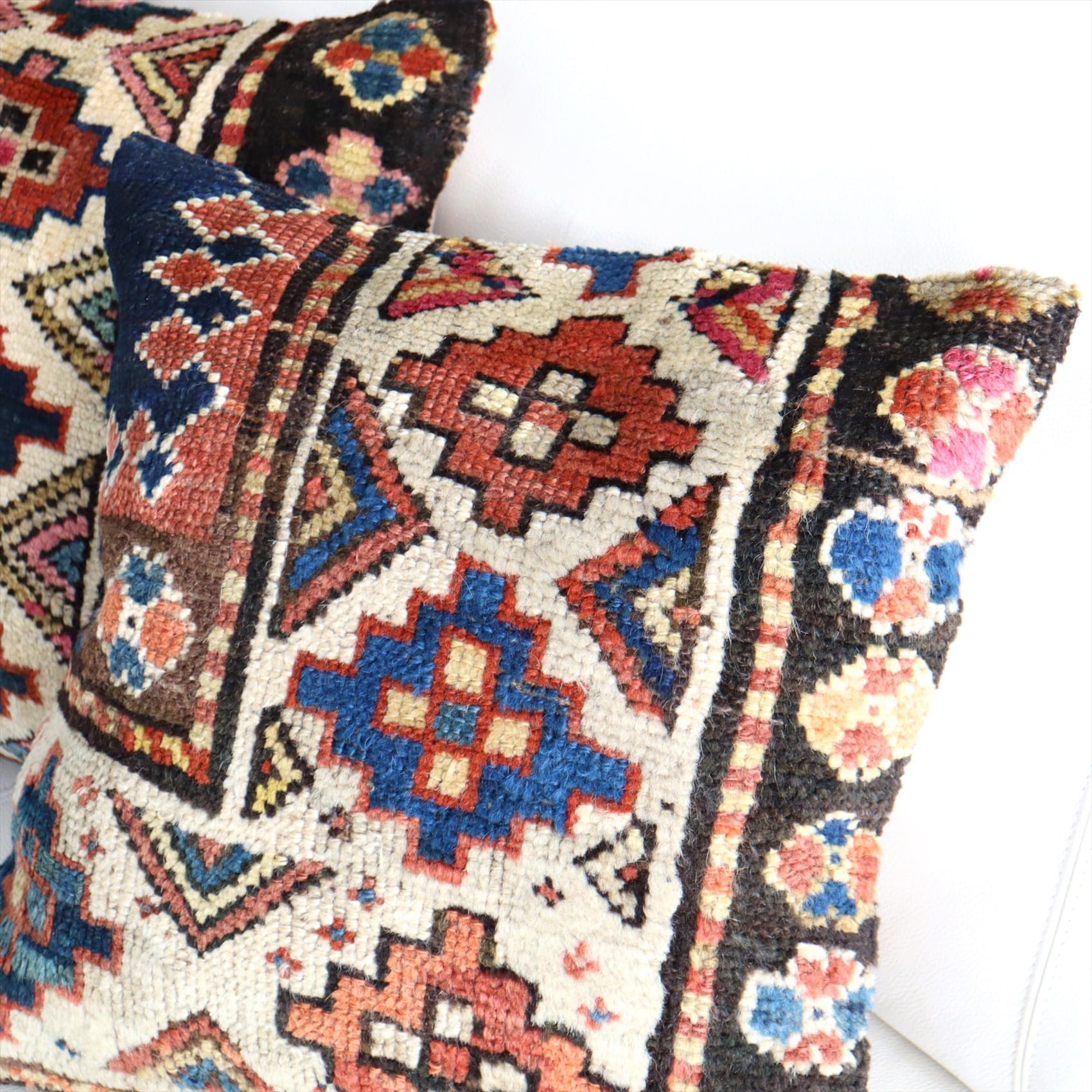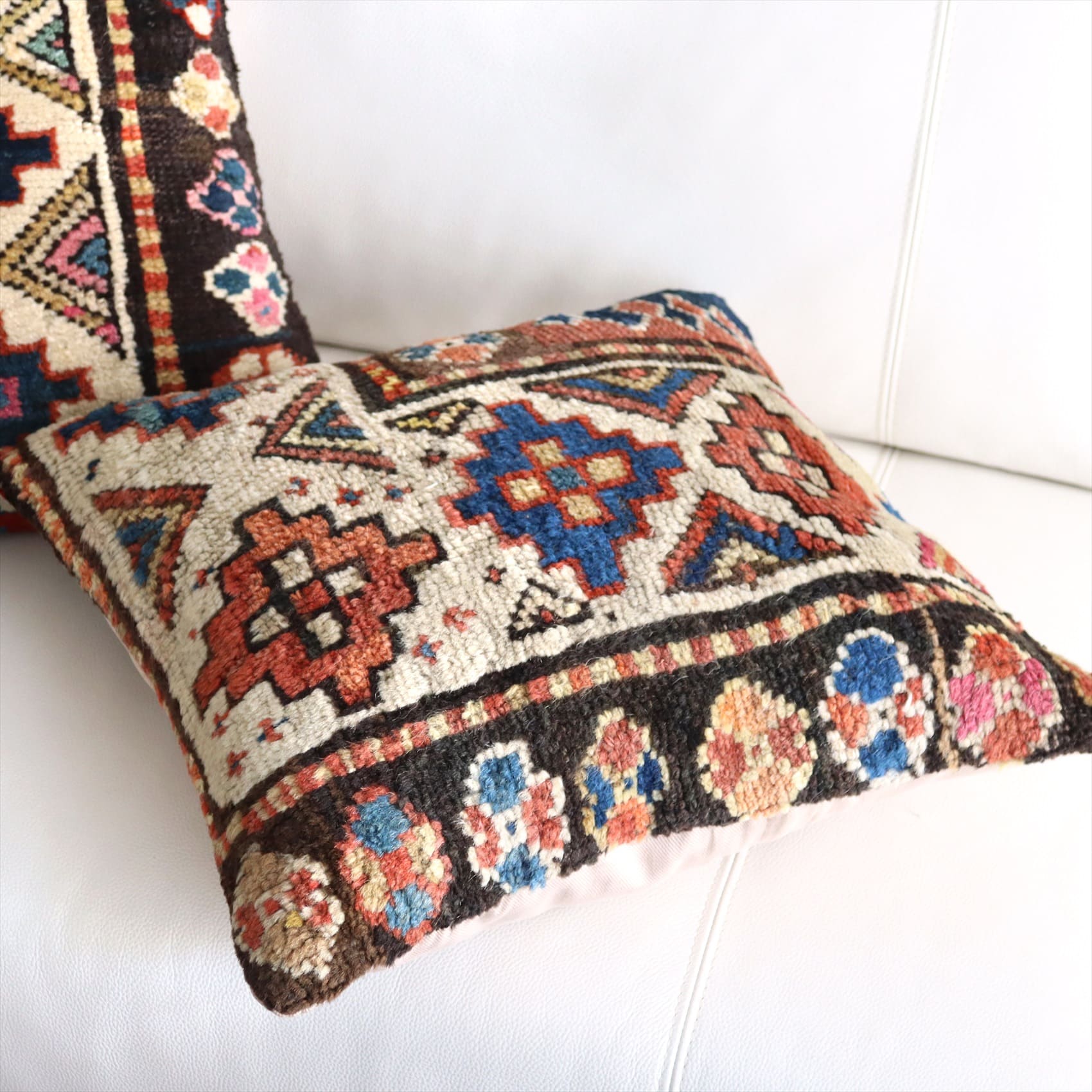 - クッションカバー ヴィンテージ パイル織り 絨毯 40cmサイズ コーカサス ネイビー&ブラウン