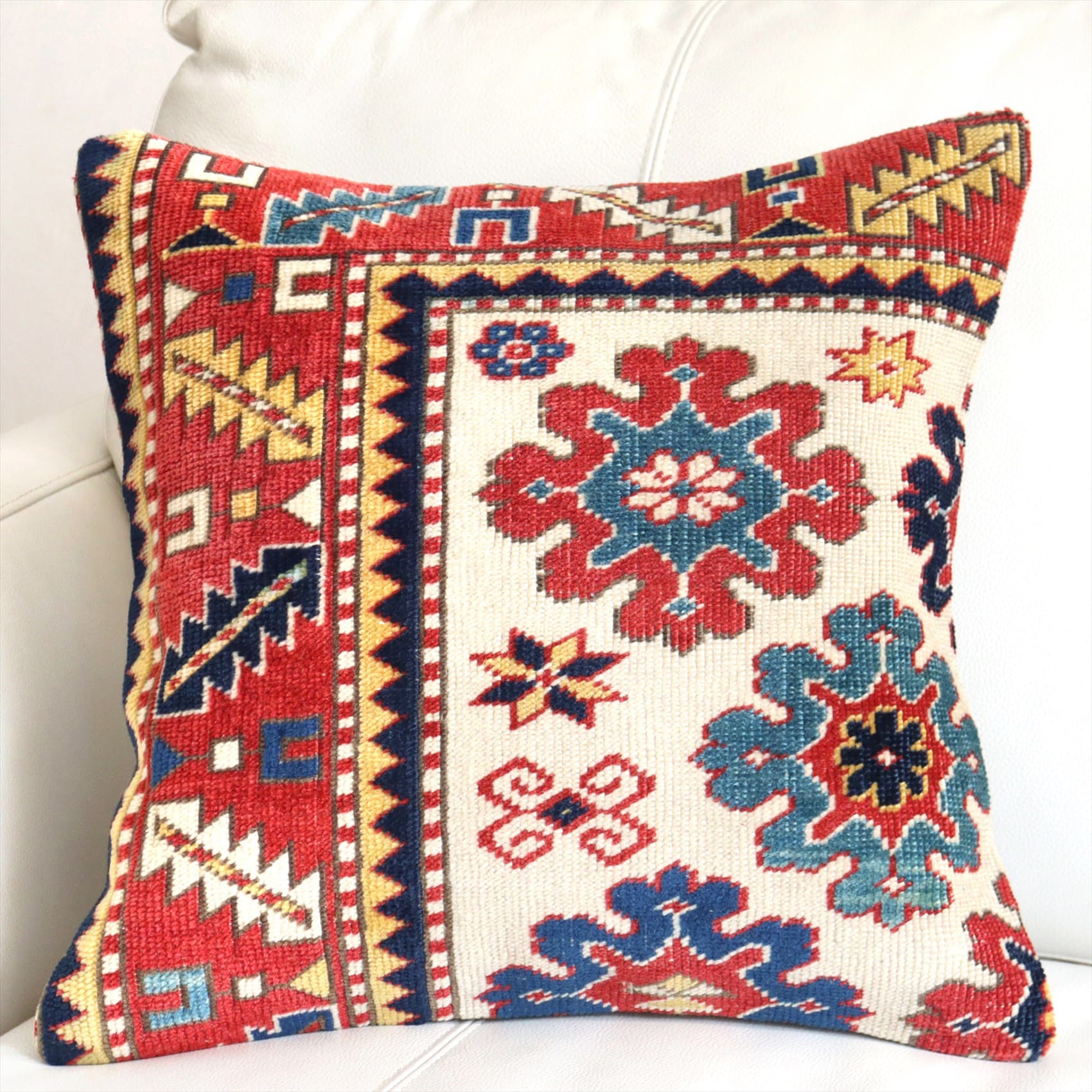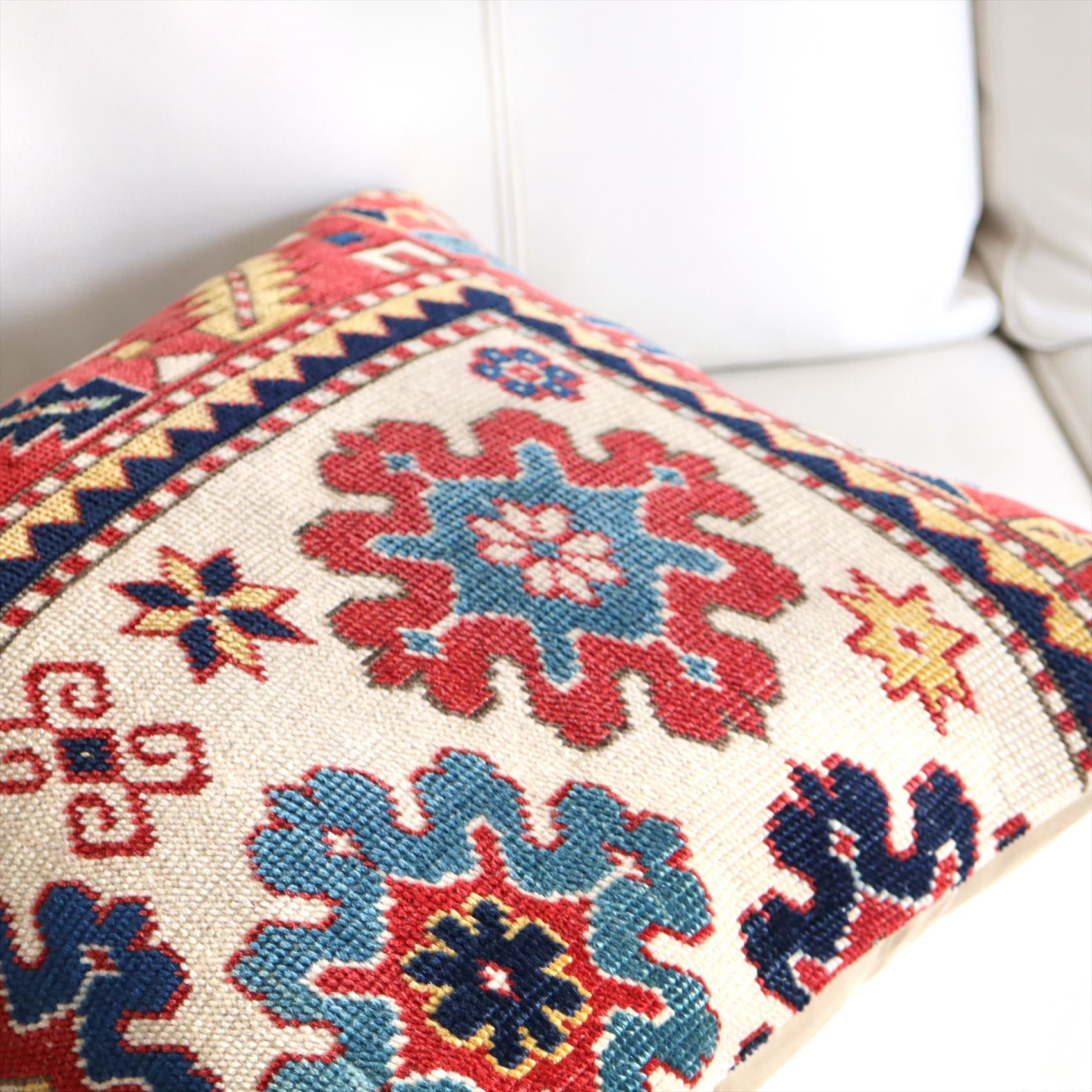 クッションカバー ヴィンテージ パイル織り 絨毯 40cmサイズ コンヤ フラワーモチーフ