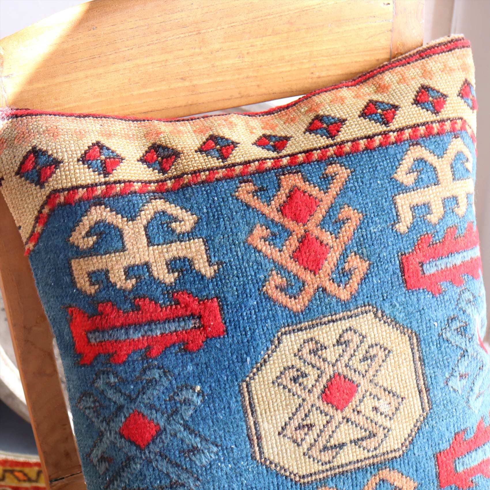 4. クッションカバー ヴィンテージ パイル織り 絨毯 45cmサイズ コンヤ ブルー