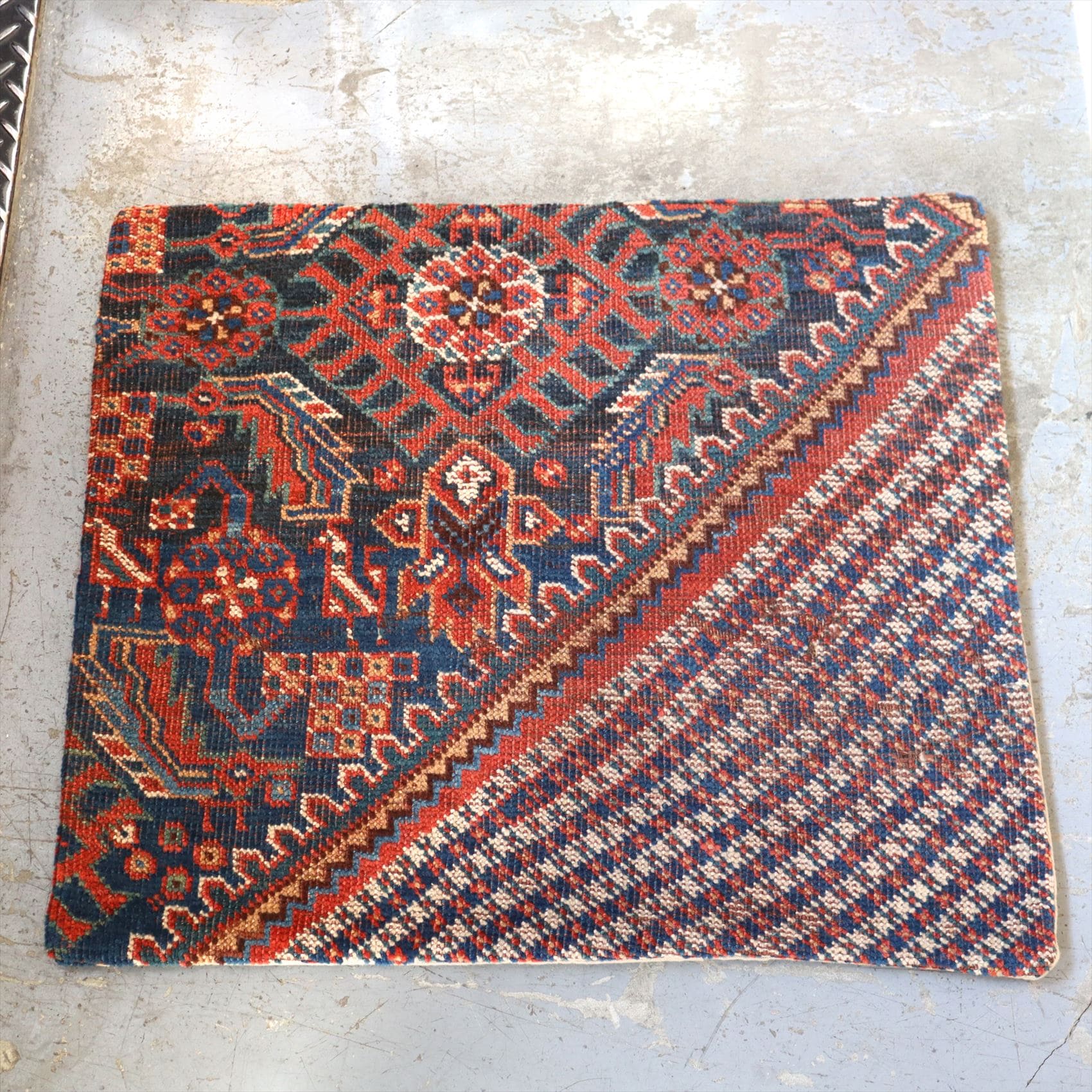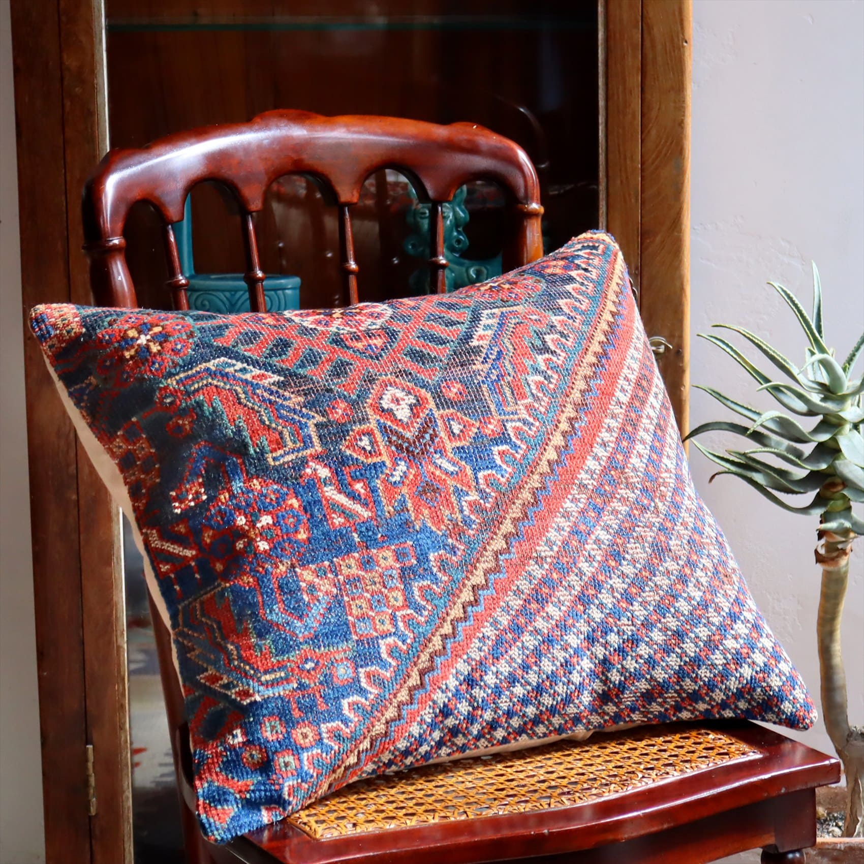 - クッションカバー ヴィンテージ パイル織り 絨毯 ビッグピロー 横長 長方形 54×46cm カシュカイ 幾何学モチーフ