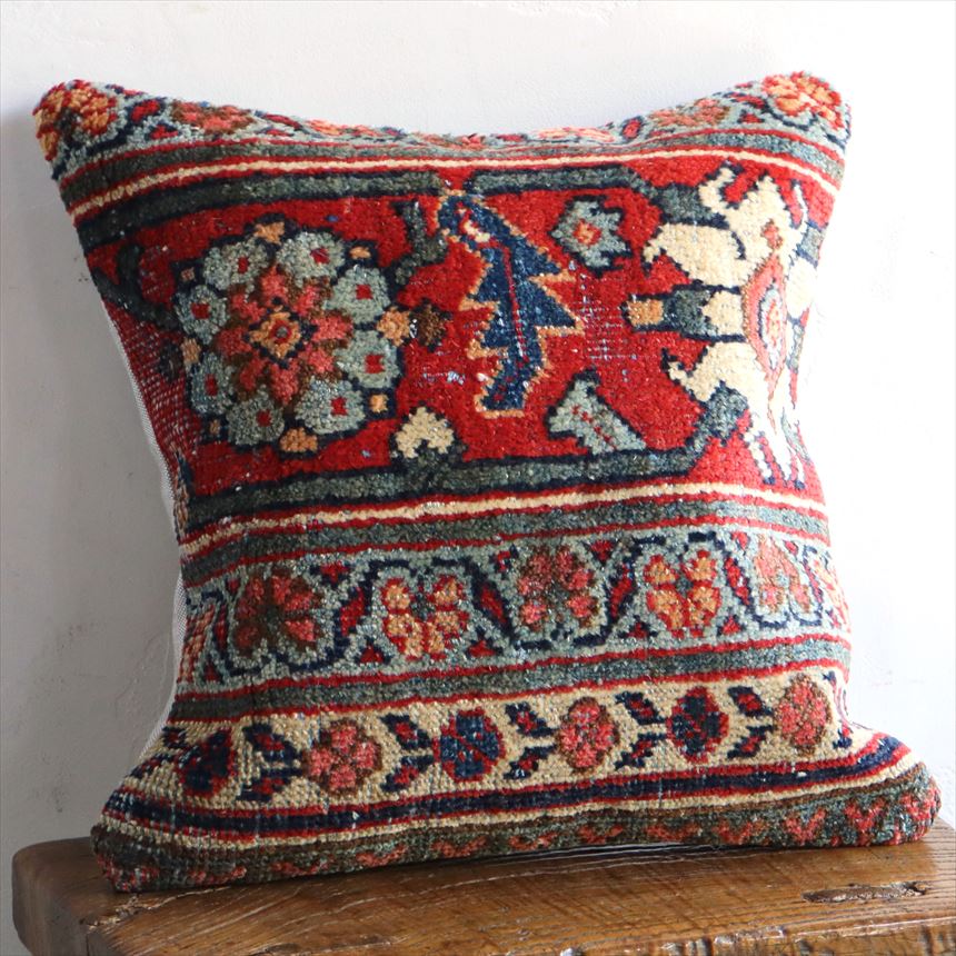 ヴィンテージラグクッションカバー 39×40cmトライバルラグ ハマダン