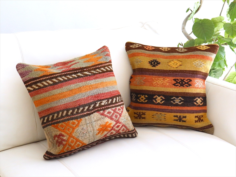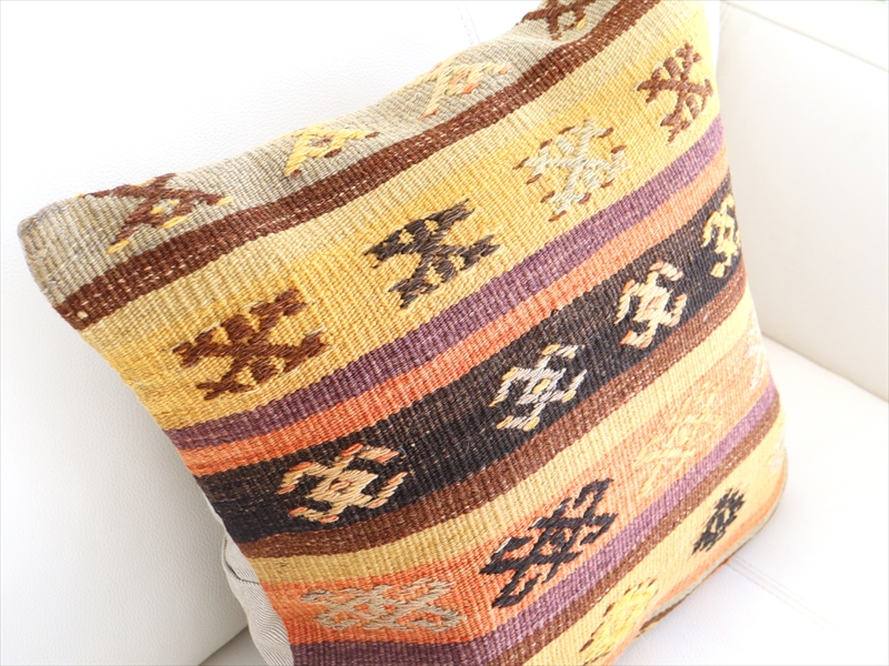 オールド キリムクッションカバー 40cmサイズ Turkish Kilim Cushion トルコキリム/コンヤ(Konya)ジジム・ボーダー