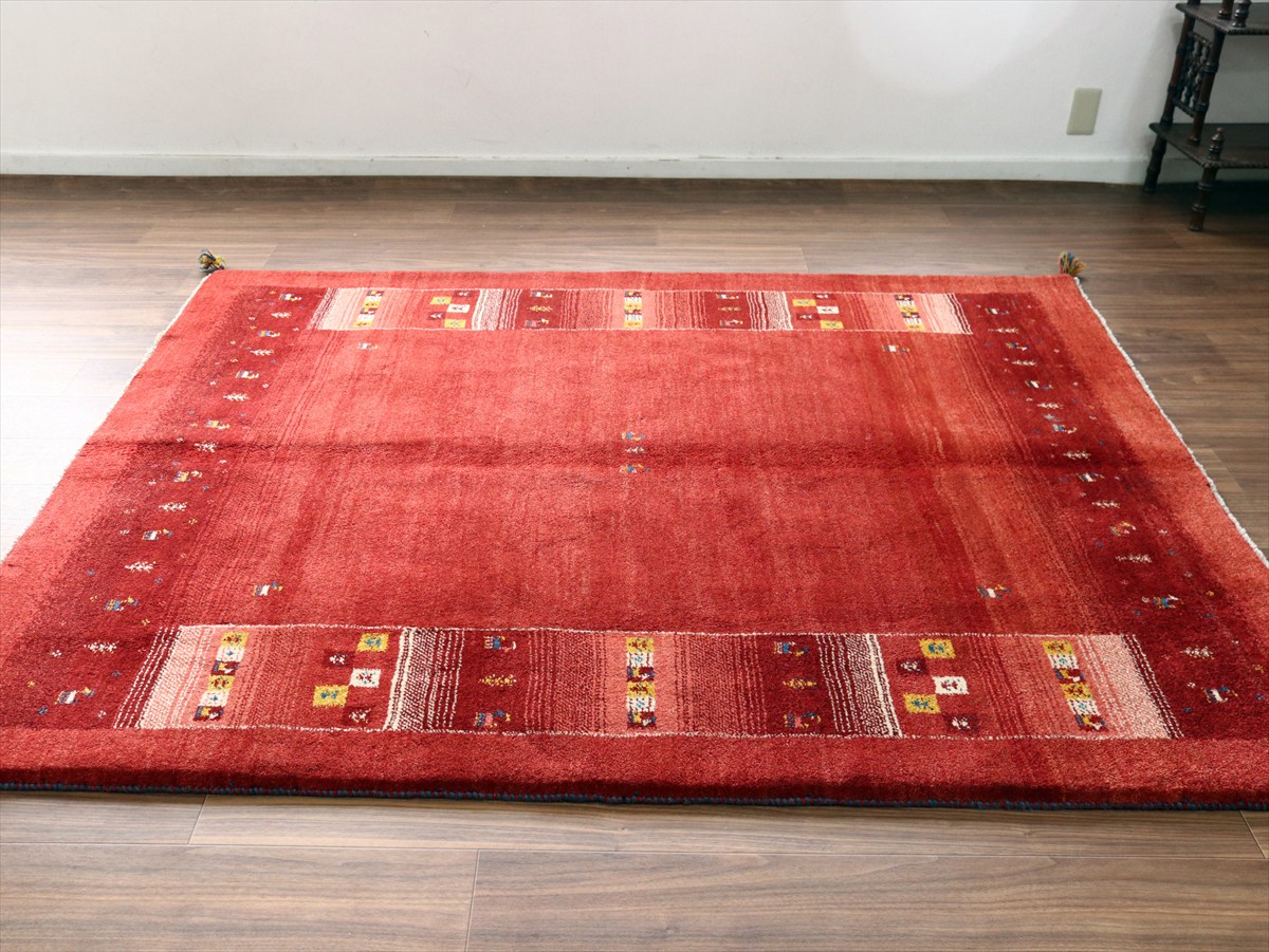 ギャッベ Gabbeh レッド192×157cm イラン産 カラフルな動物と生命の樹