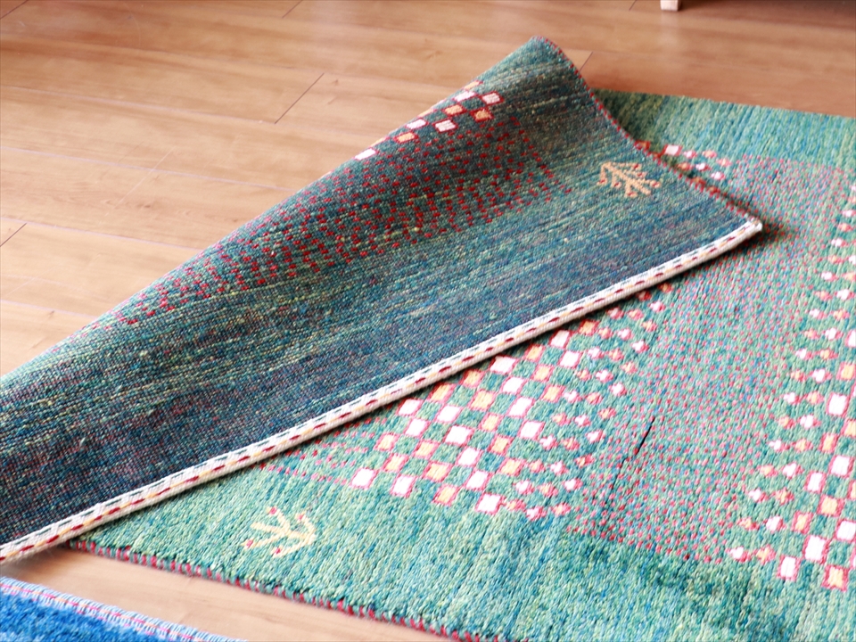 Key:Gabbeh, Tribal Rug, Hand knotted, wool, Natural dye, Shiraz, Fars, Quashkai,green, ギャベ, ラグ, 手織り絨毯, 部族絨毯, グリーン, 緑, 幾何学柄, イラン直輸入, カシュカイ族, ウール100%, 東京、中野区,ガラタバザール