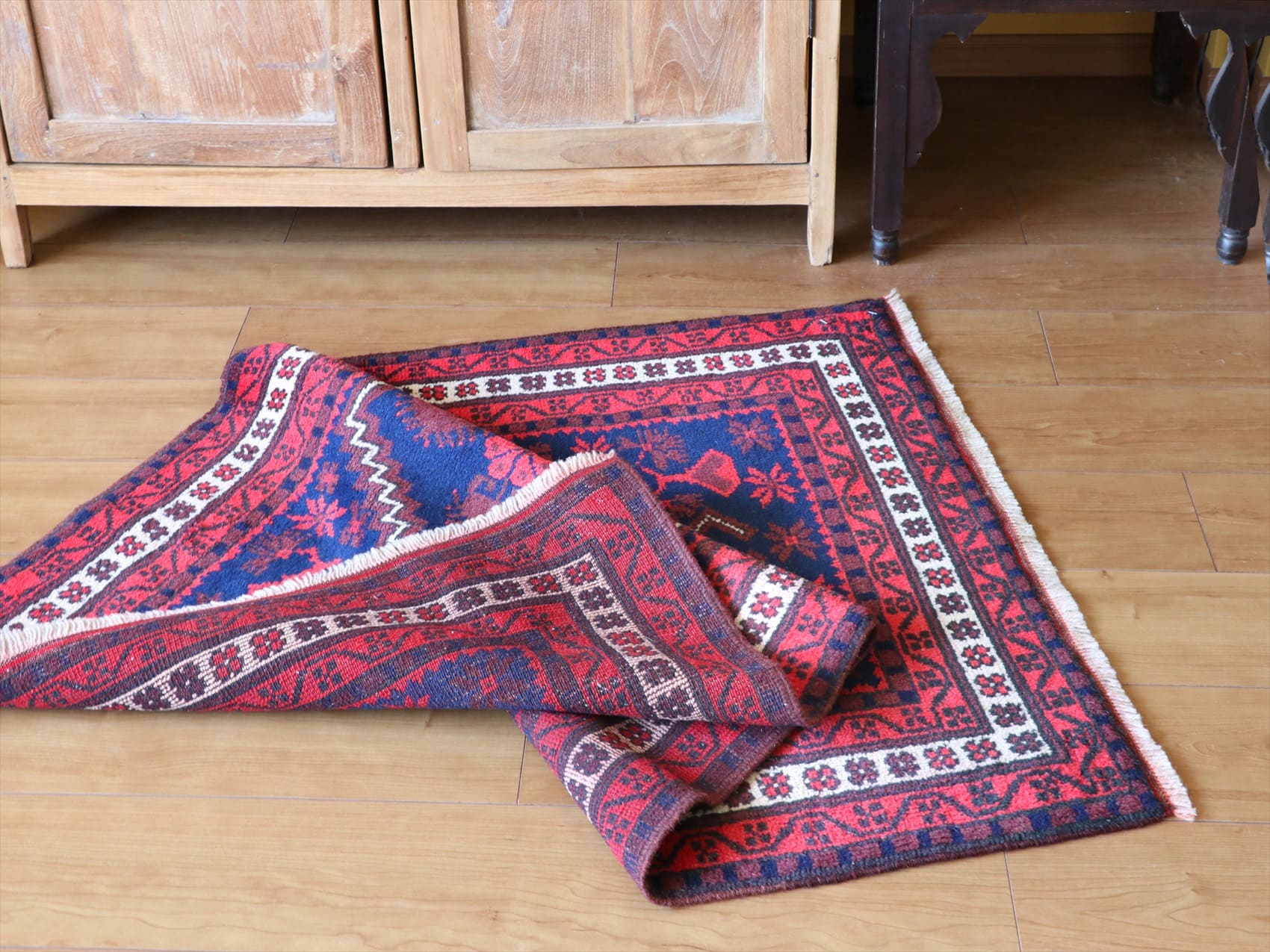 トルコじゅうたん エリアラグ ヤージベディル128×77cm ネイビー&レッド