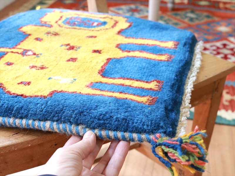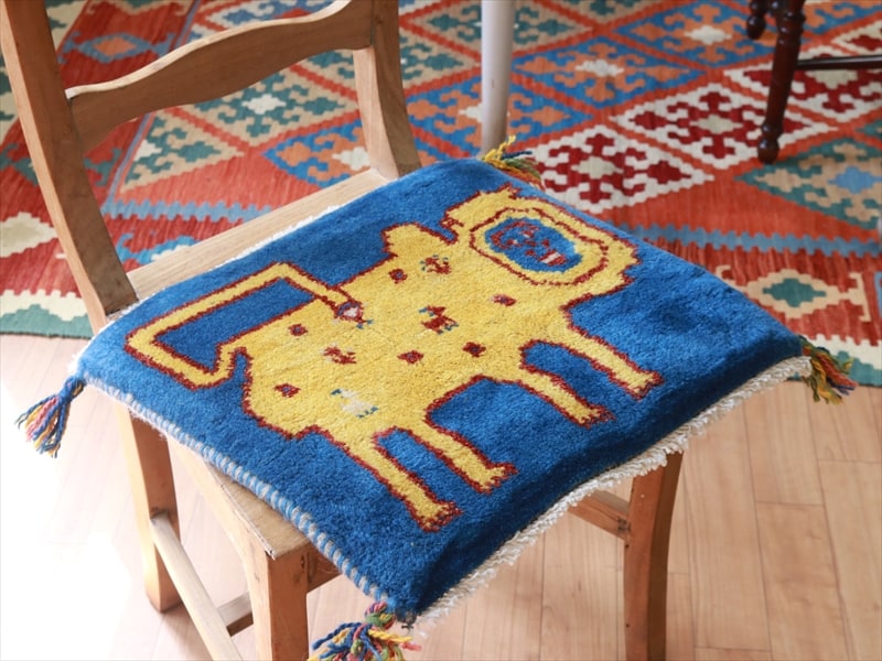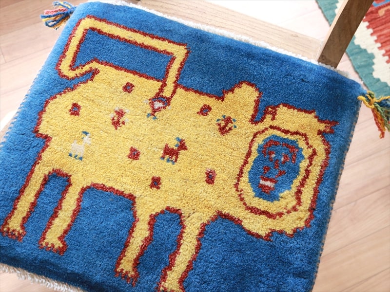 ライオンギャッベ 40x43cm ブルー やさしい表情の人面ライオン ブルー