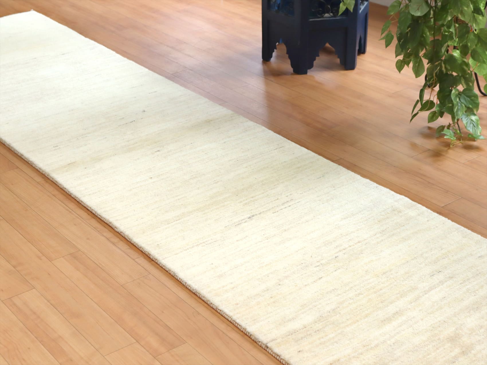 - ギャッベ イラン産 手織りラグ289×63cm モチーフなし無地 ランナー ナチュラル Bahafsheh