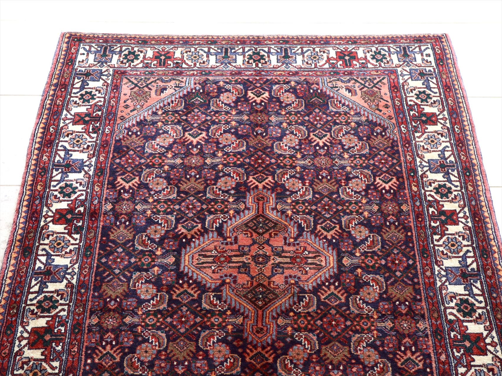 | イラン西部、ハマダン地方で織られた手織りラグ。連続したヘラート文様が織り込まれた伝統的なデザイン。クラシカルで重厚感のある一枚です。 |