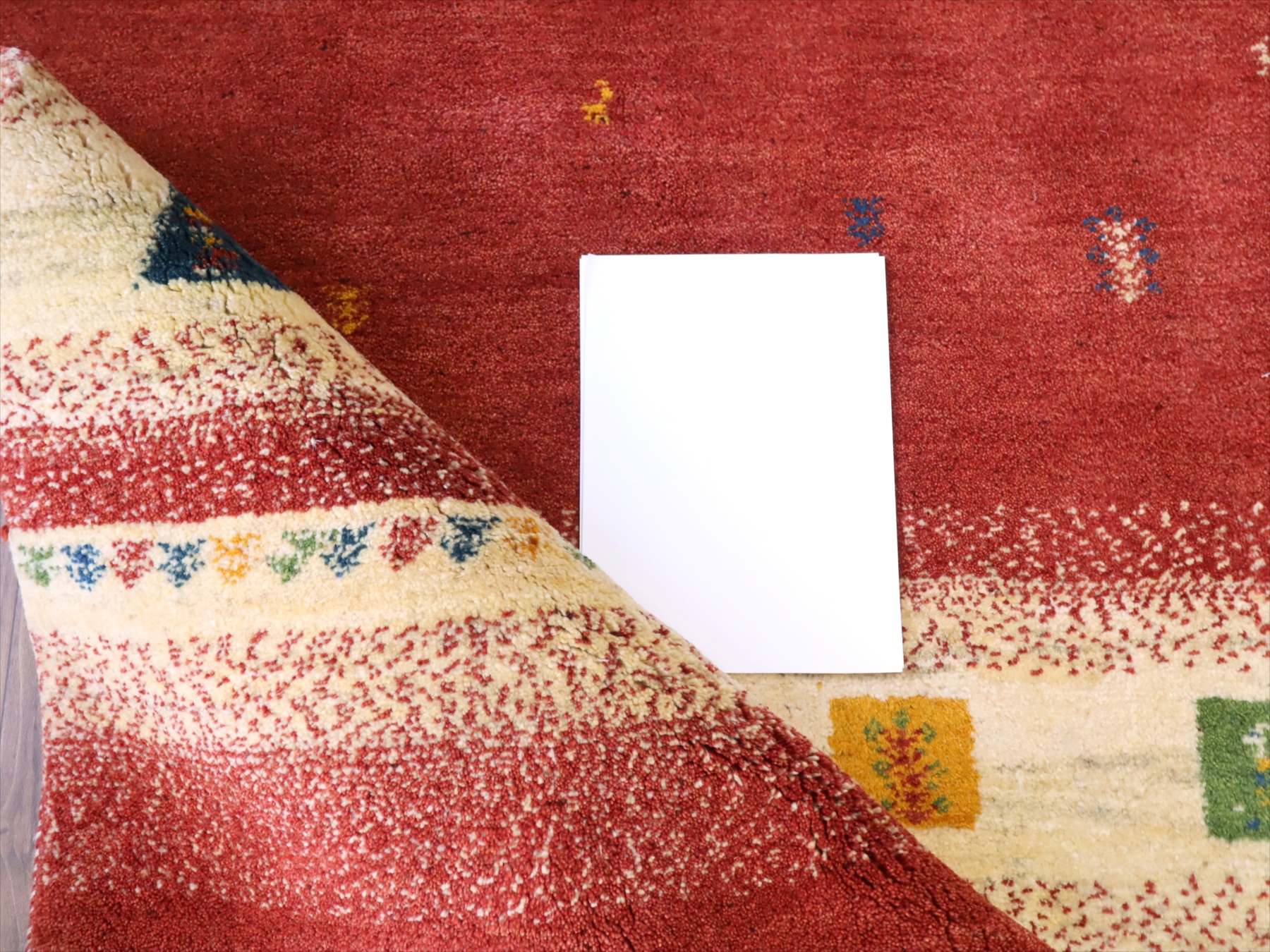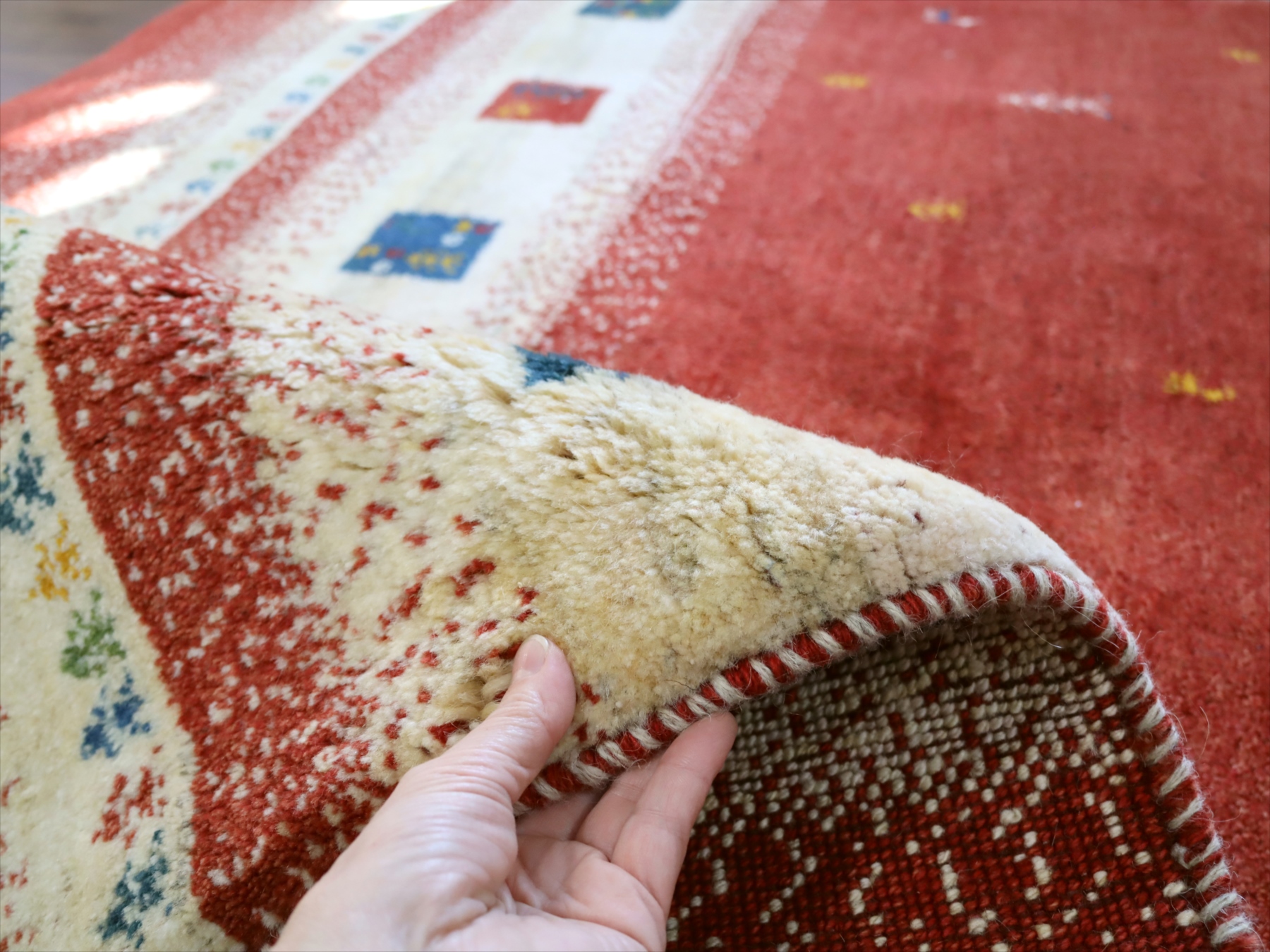 ギャッベ カシュカイ族の手織りラグ 189x154cm レッド&ナチュラルアイボリー