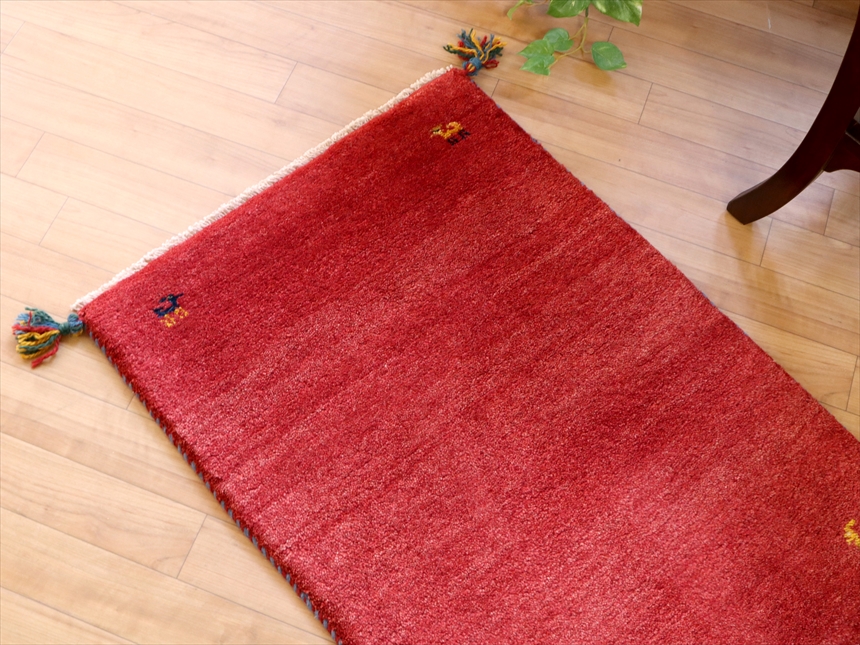 手織りギャッベ イラン産88×60cm シンプルなレッド 玄関マット