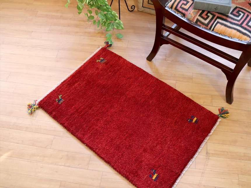 手織りギャッベ イラン産87×60cm シンプルなレッド 玄関マット