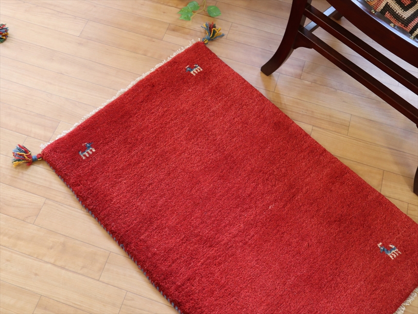 手織りギャッベ イラン産90×68cm シンプルなレッド 玄関マット