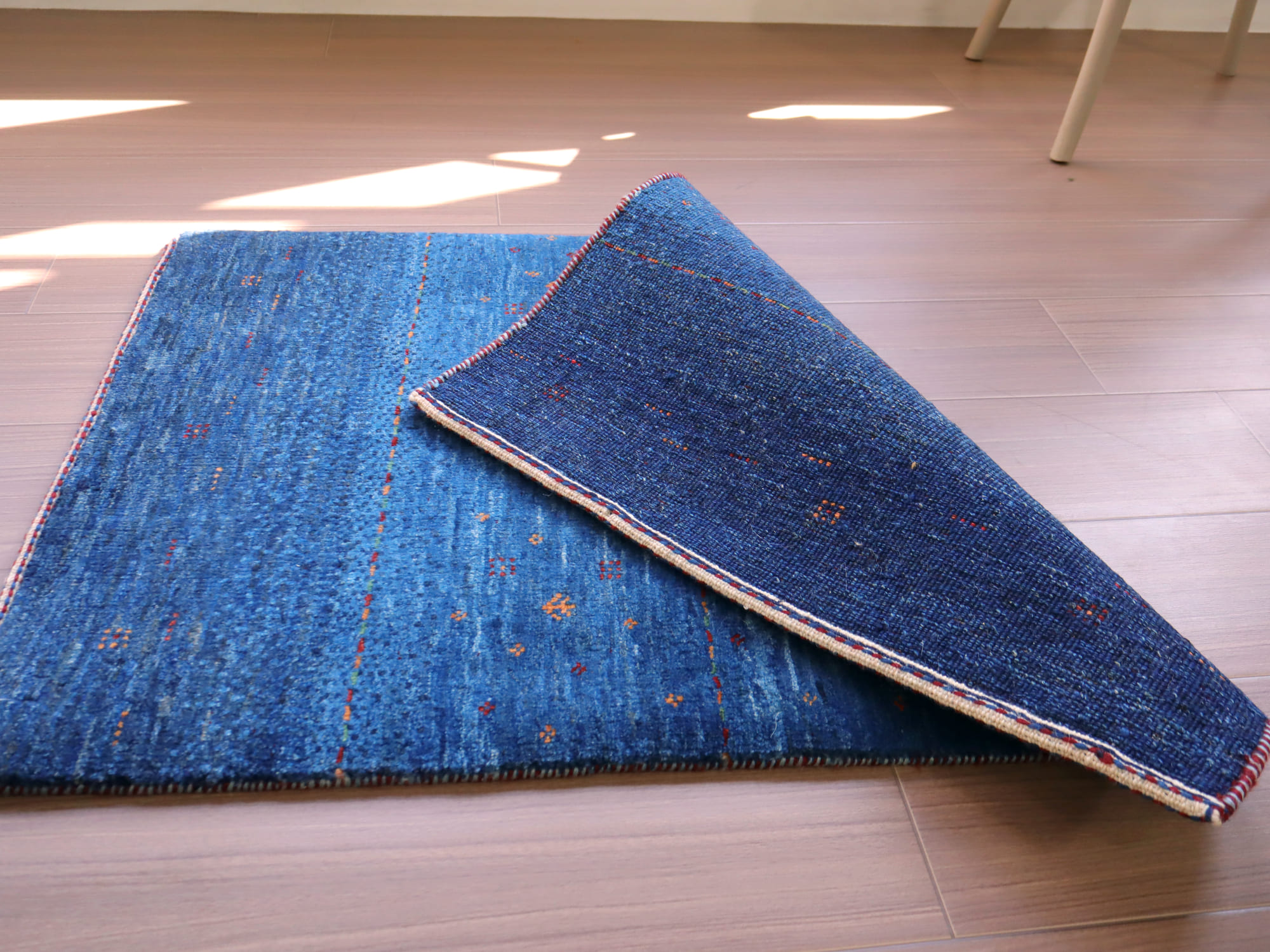 - ギャッベ ロリアタシュ 最高級の細かな織り87×61cm ブルー ネイビー グラデーション 無地 シンプル