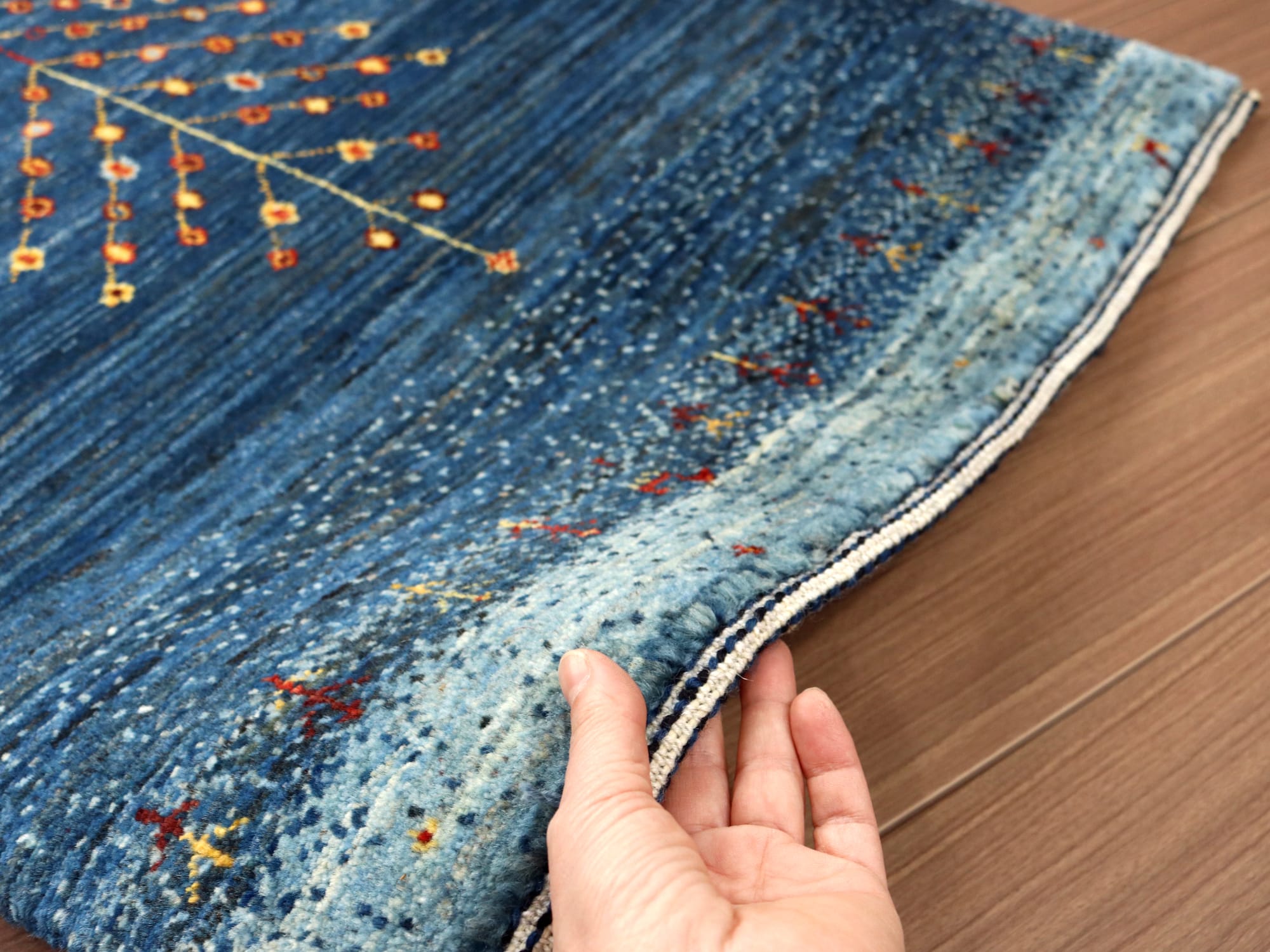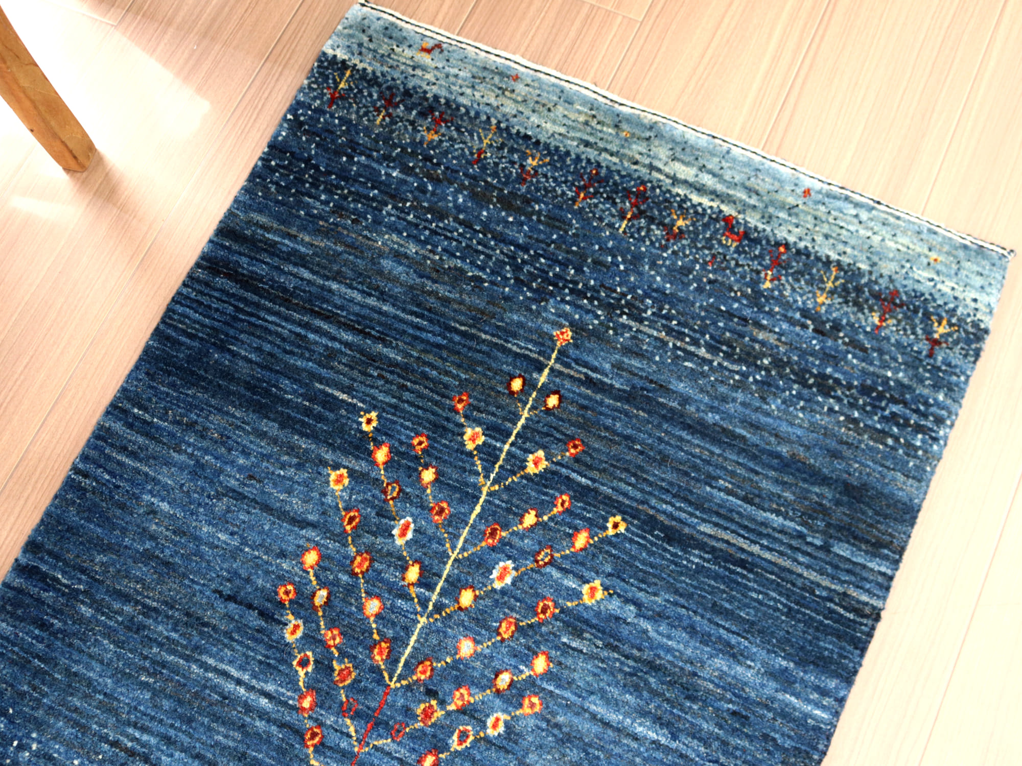 ギャッベ ノウバフト 手織りラグ Nowbaft 90×65cm 玄関マットサイズ ブルー 生命の樹