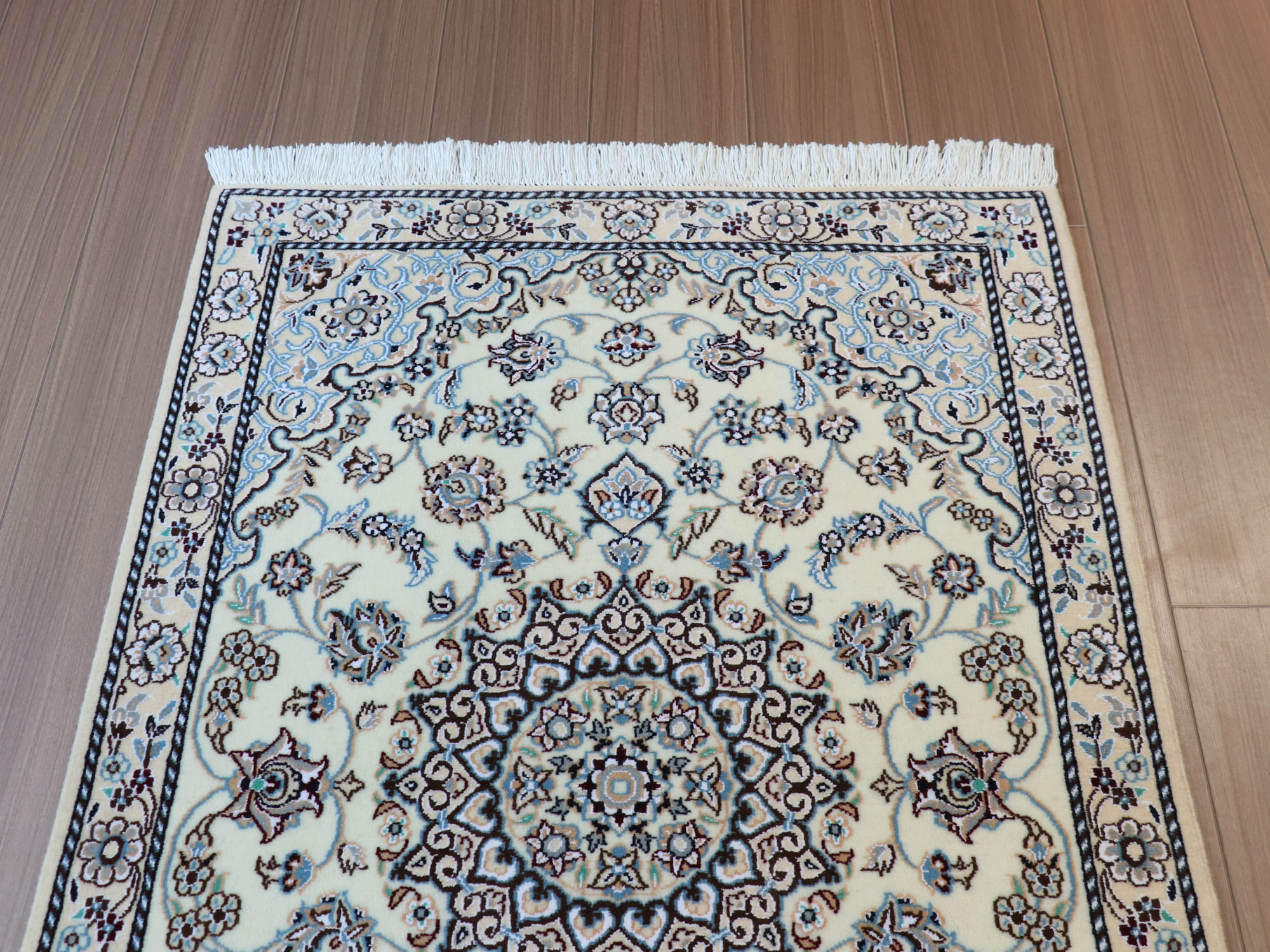 ペルシャ絨毯 ナイン産 9L117×79cm アイボリー ベージュ 花のアラベスク