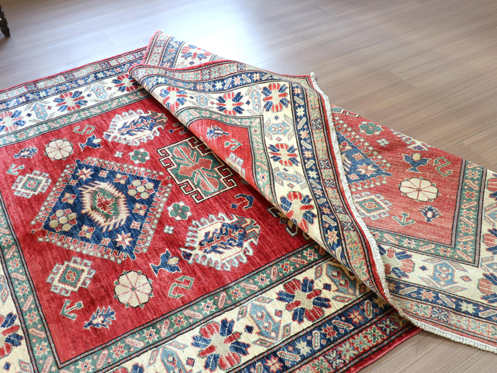 トルコ絨毯 手織りラグ 208x156cm レッド リプロダクト コーカサス地方の伝統柄
