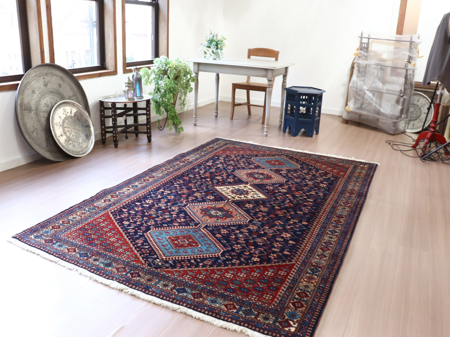 Key:Tribal Rug, Vintage rug, Area rug, Old Carpet, hand knotted, Persian carpet, Pure wool, Import, Shiraz, Fars, Qashkai tribe, トライバルラグ, エリアラグ, ヴィンテージラグ, 手織り, 一点もの, じゅうたん, 絨毯, ペルシャ絨毯, 部族絨毯, BO-HO, Collectable,