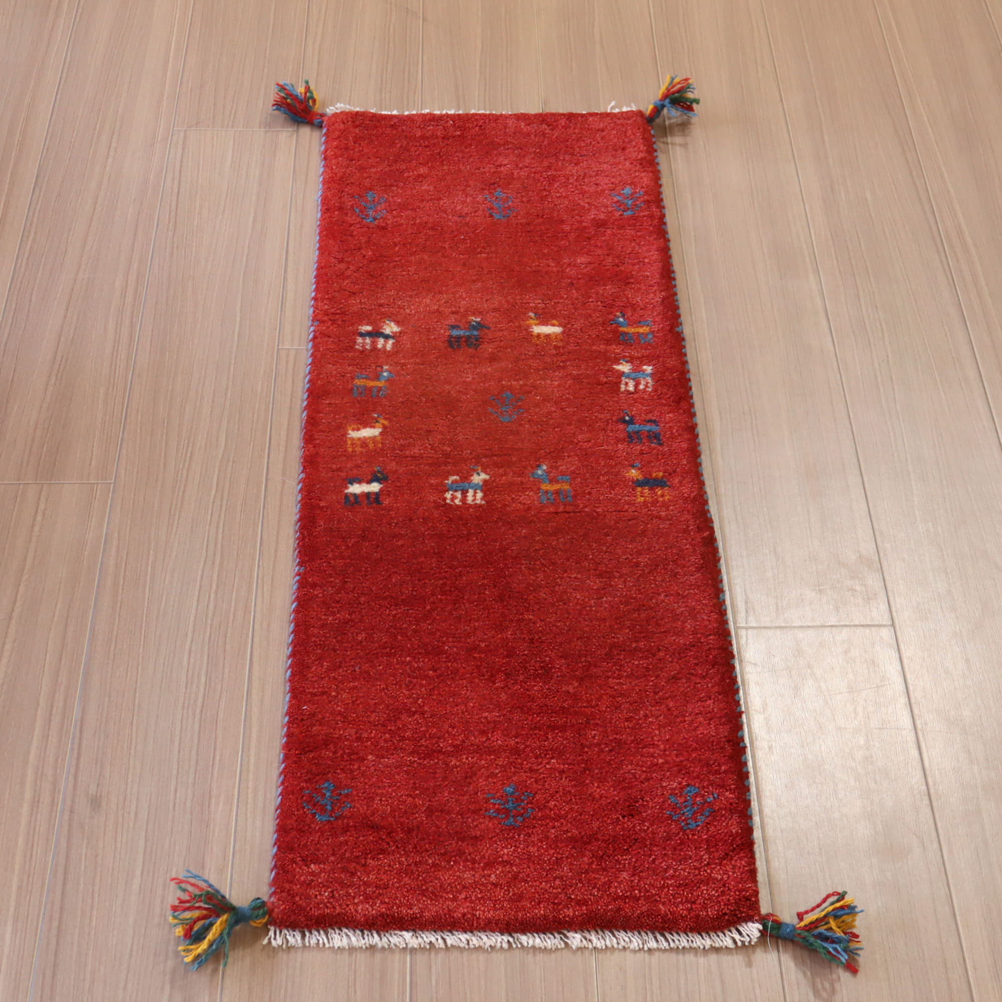 - ギャッベ イラン 細長ランナー 116x40cm レッド 動物モチーフ
